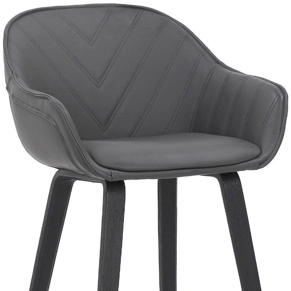 If you're making a statement home bar setting, this 30" Grey Faux Leather Bar Stool with Wooden Frame is an excellent choice to get the process underway. A true luxury stool, thanks to its brushed wood construction that provides a strong support for the plus cushioned seat with armrests that ensure a good balance while you're seated. The seat is upholstered in faux leather and features a beautiful V design on the back to create a stunning contrast that gives the entire stool design an amazing touch of class. You can enjoy longer seating periods on this stool, thanks to its foam padding and arm rests. At the base of the stool is a square footrest that ensures every minute you spent on the stool is filled with maximum convenience. 36 x 21 x 21