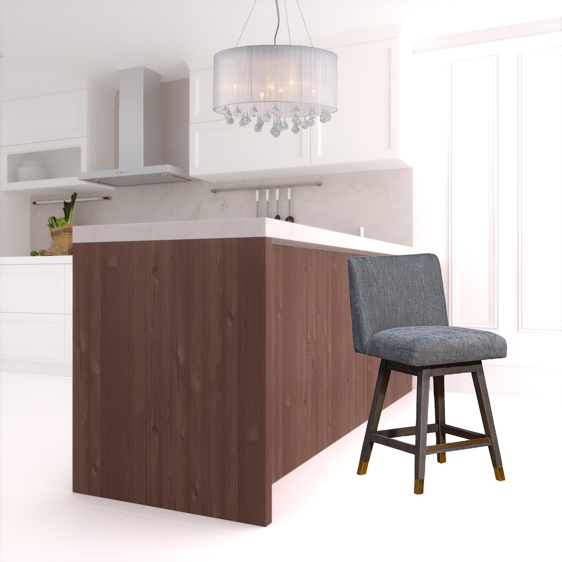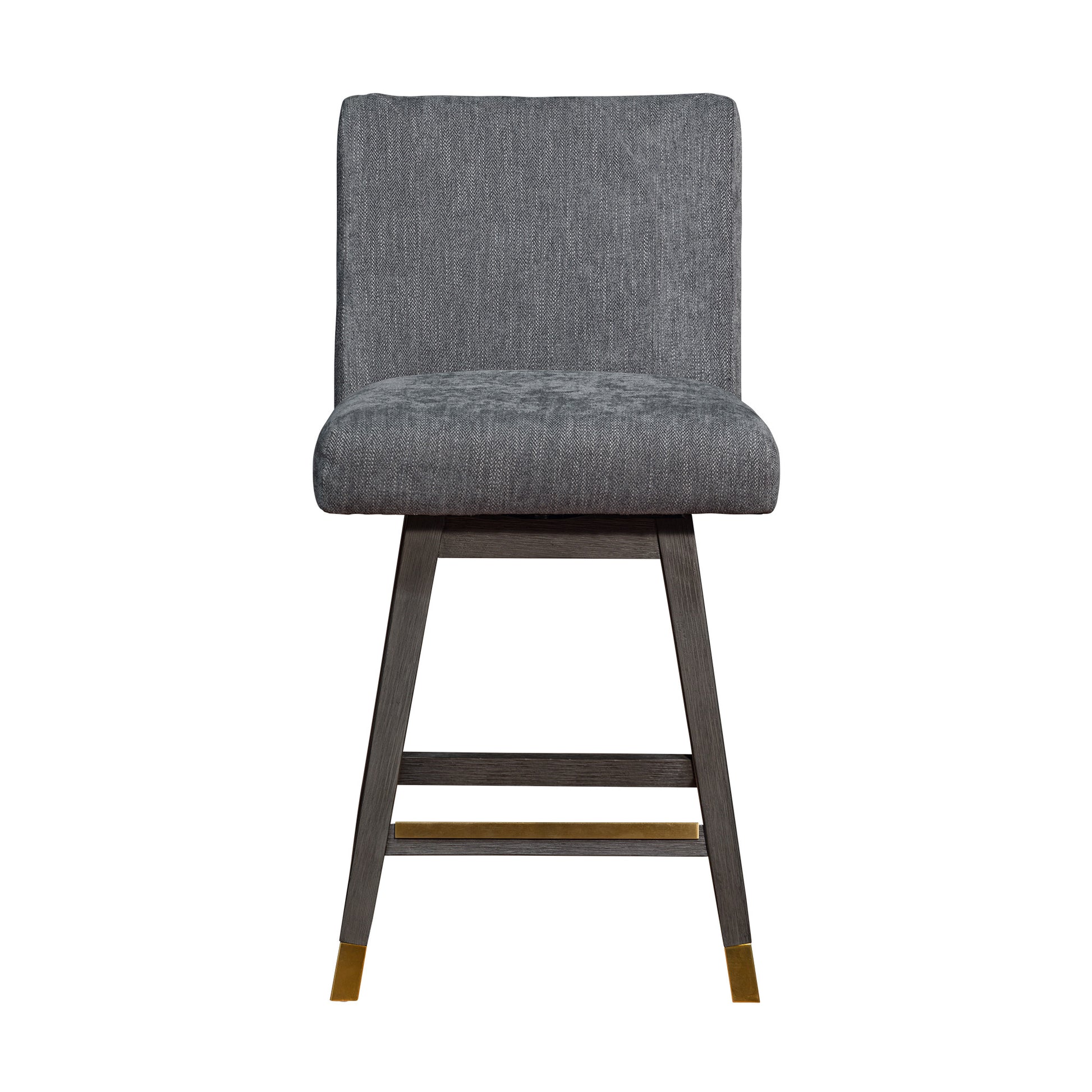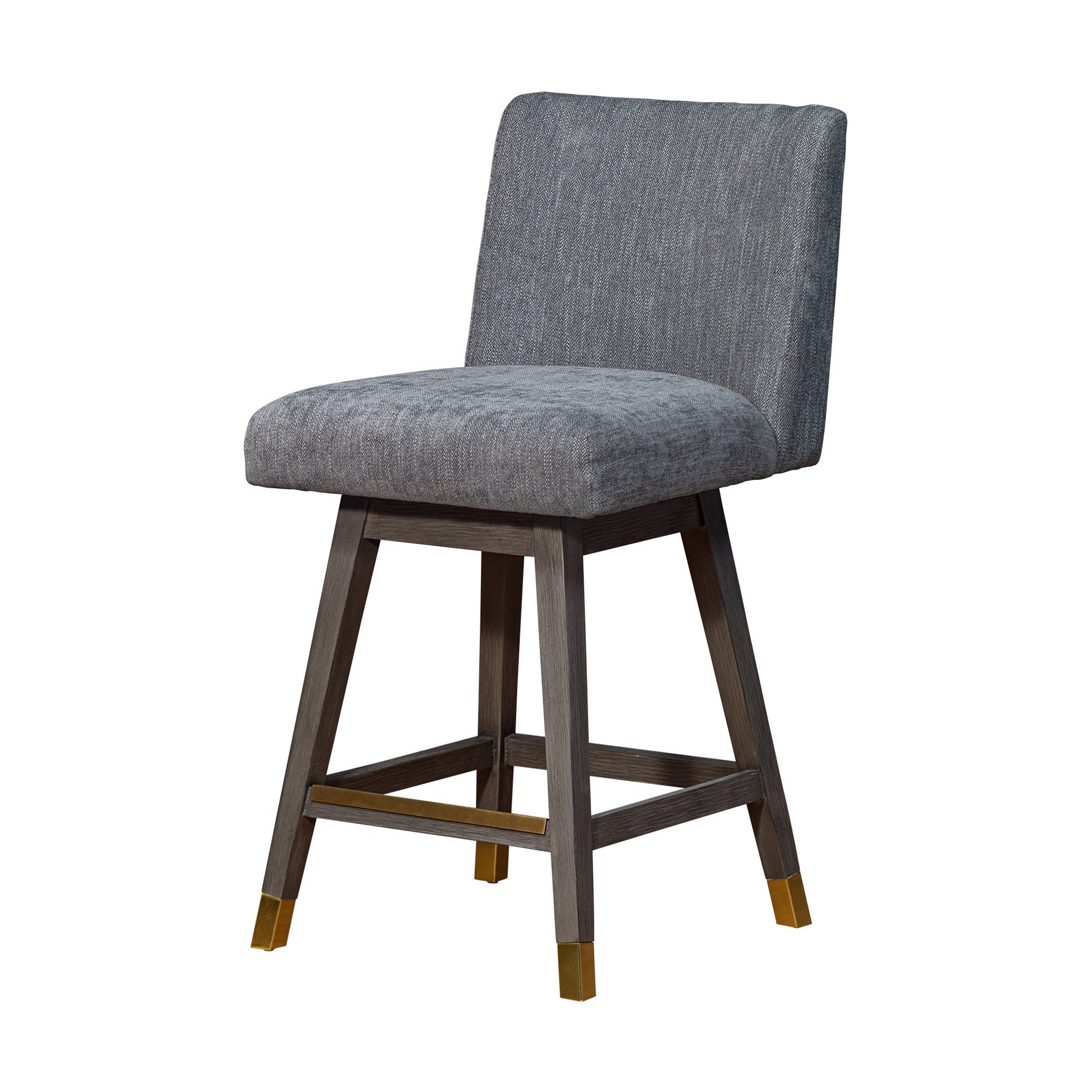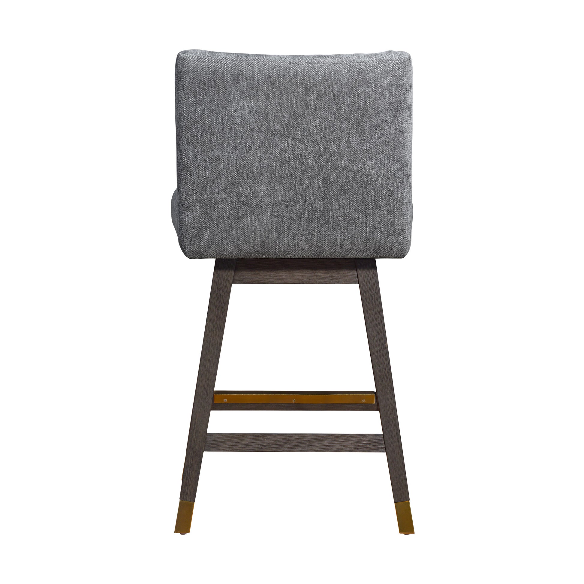 Bring a trendy bar vibe to your space, with this 26" gray solid wood swivel bar height bar chair with footrest. A solid gray solid wood frame is finished off with a matching gray upholstered seat, giving this chair a chic monotone look. Designed with a footrest for comfort and convenience. 36.5" H x 22.5" W x 19" D