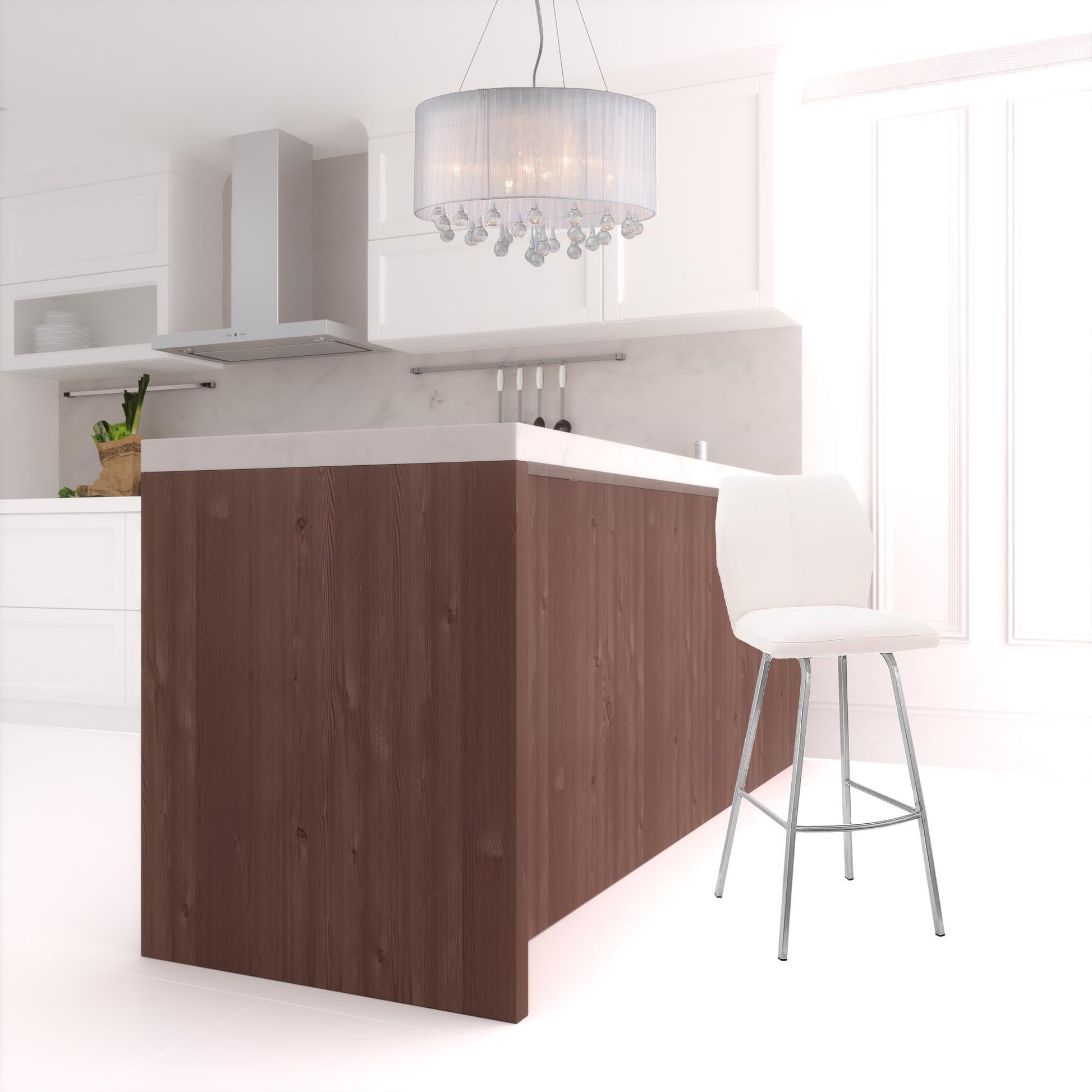 Comfortable enough to sit in for awhile, this 38" white faux leather and iron counter height bar chair will transcend the look of your room. Quality construction from brushed stainless steel iron combines with white faux leather to give this stool a fresh and updated look. The round shape of the seat combines with a full back to give this chair a comfortable and fashionable look. A great seating option, this stool will bring a unique look to any room. 38" H x 17" W x 22" D