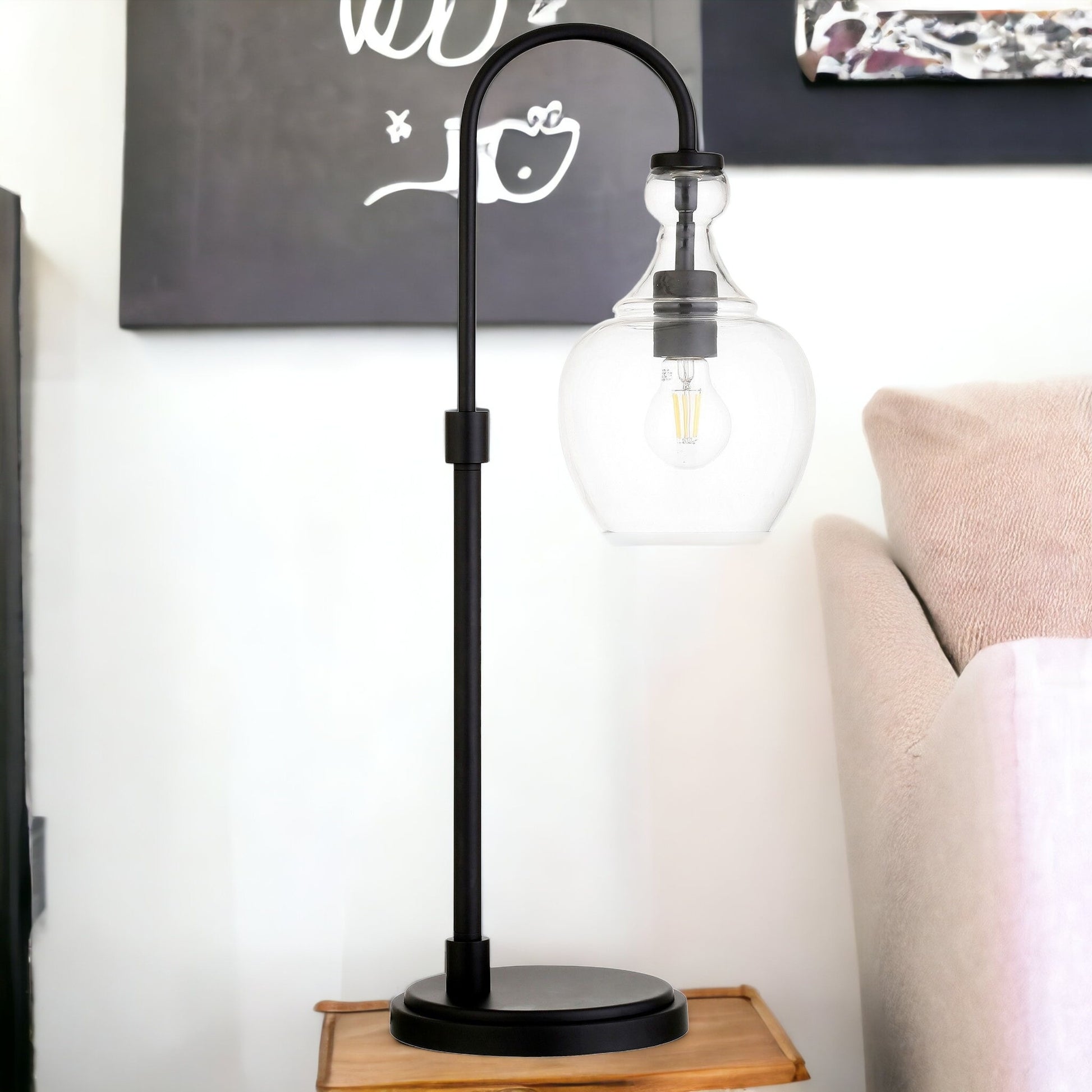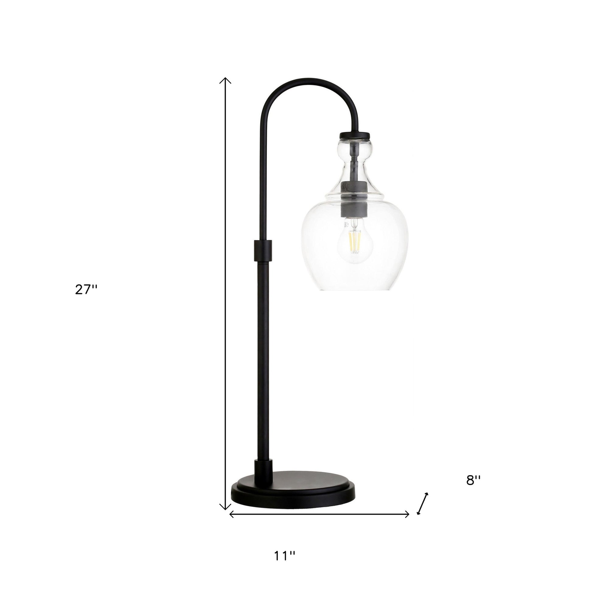 27" Black Metal Arched Table Lamp With Clear Dome Shade