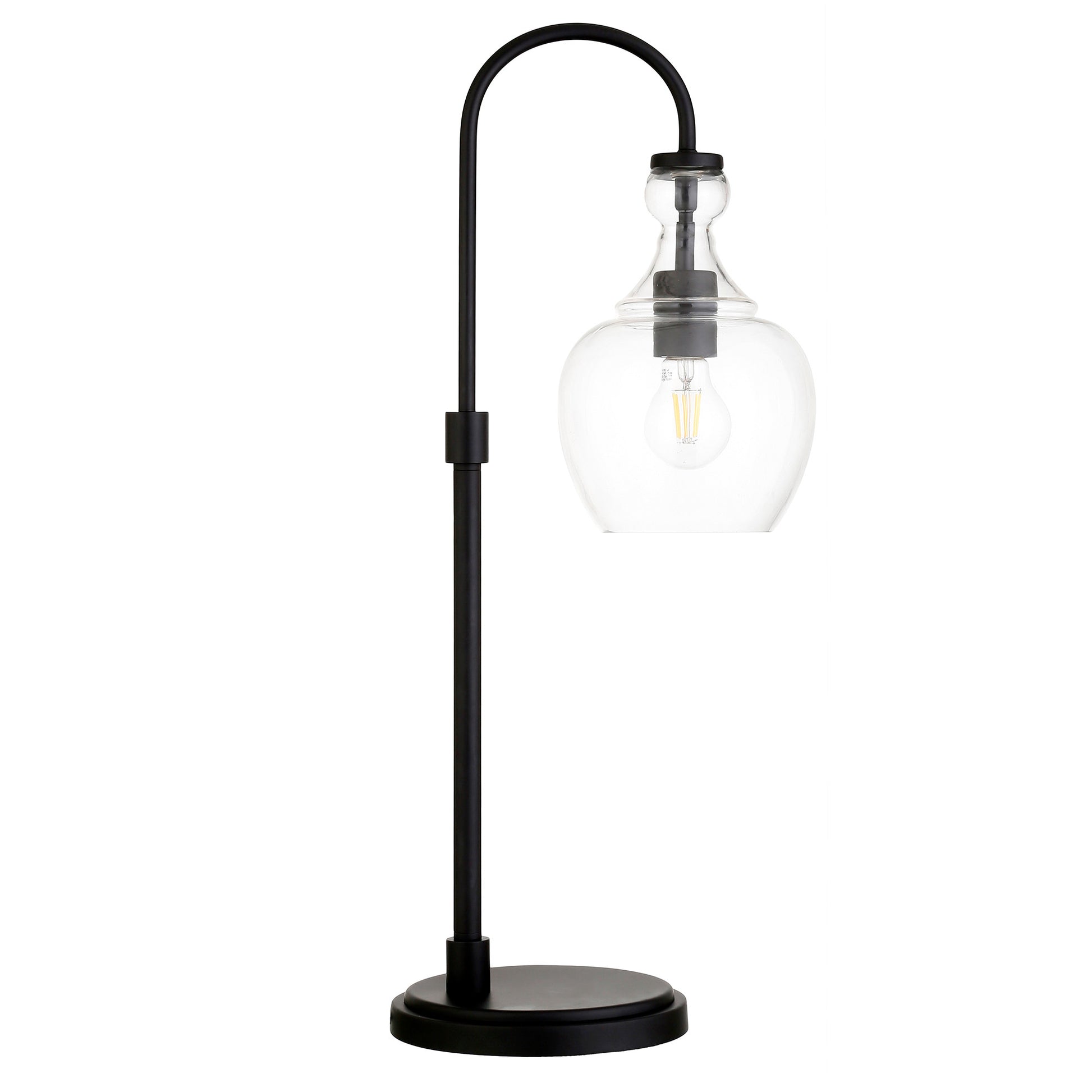 This 27-inch black metal arched table lamp with clear dome shade is a great way to add some brightness to any corner of your home. The base of this lamp is made of black metal. Includes a clear glass, dome shaped shade, making this a fashionable piece that will complement most any interior. A sophisticated take on a classic, this arched table lamp is a great option for a unique look. High quality design makes this a great lamp for not only lighting, but accenting a room with style. The perfect lamp to create just the right natural and soothing light in your space. 27-inch H x 11-inch W x 8-inch D