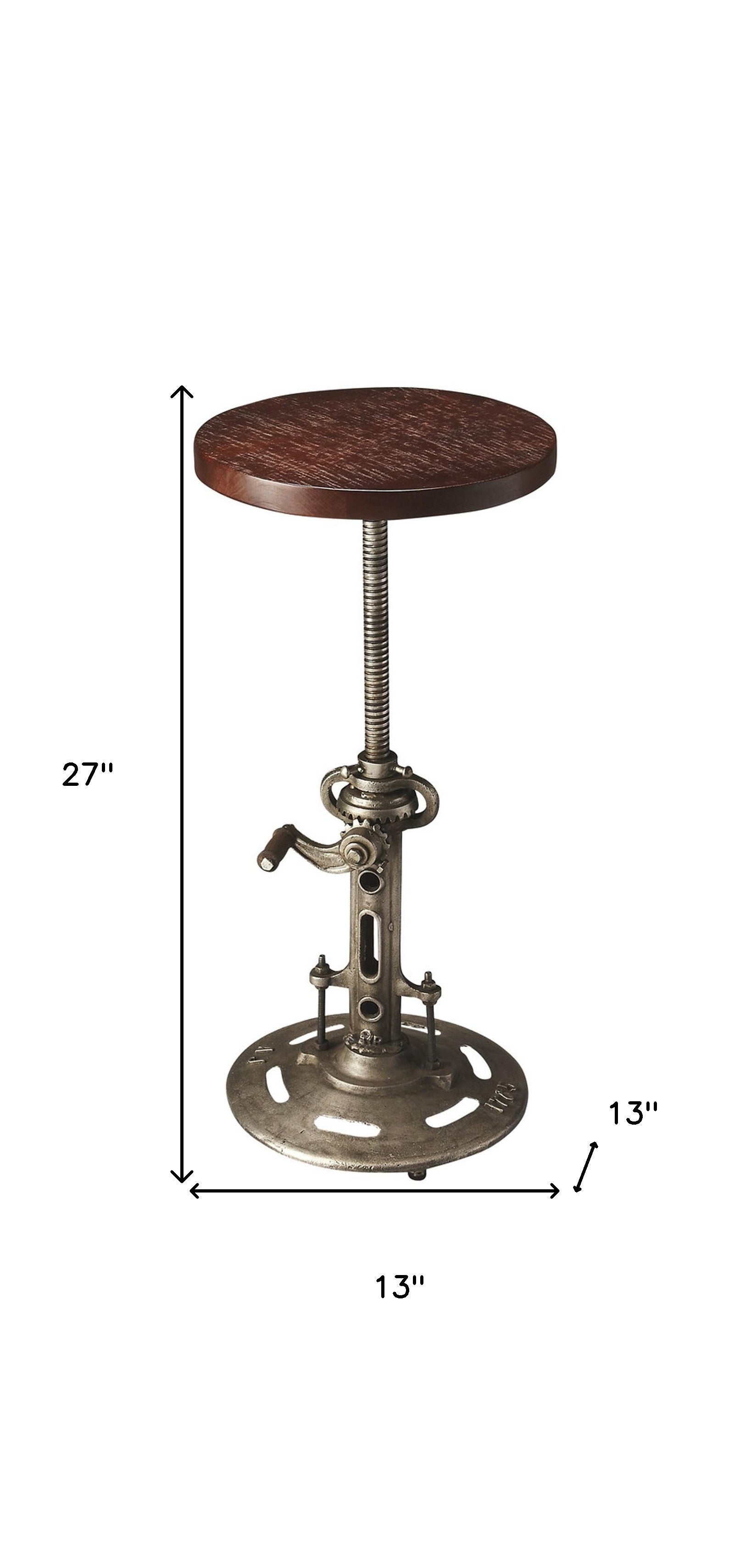 27" Brown And Silver Iron Swivel Counter Height Bar Chair