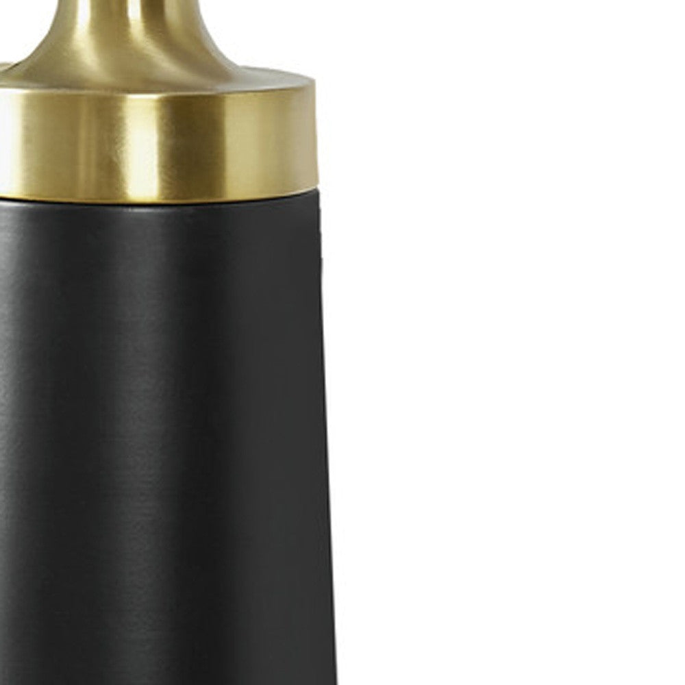28" Black and Gold Metal Cylinder Table Lamp With Beige Drum Shade