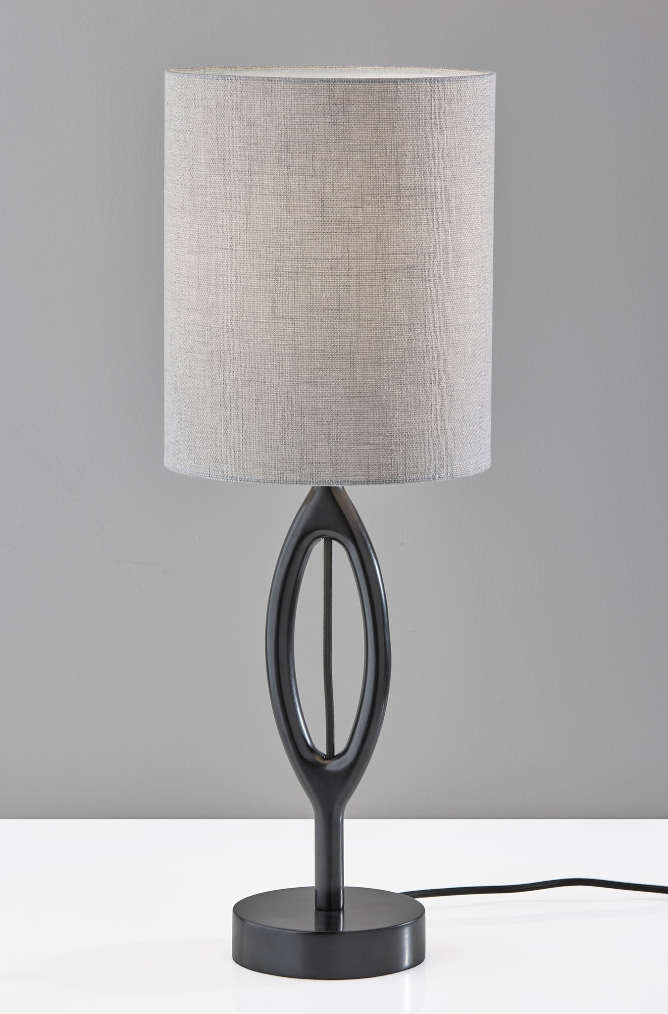 This 28-inch black solid wood round table lamp with gray drum shade is the perfect combination of design and function. A gorgeous black solid wood base brings just the right amount of pizzazz to this fabulous lamp. The gray shade has a drum shape and is made from fabric. This standard table lamp is designed to provide general lighting to the area. Use this lamp anywhere and elevate the look of the whole space. Bring some lite and good vibes into your space with this updated and stylishly designed lamp. 27.5-inch H x 10-inch W x 10-inch D