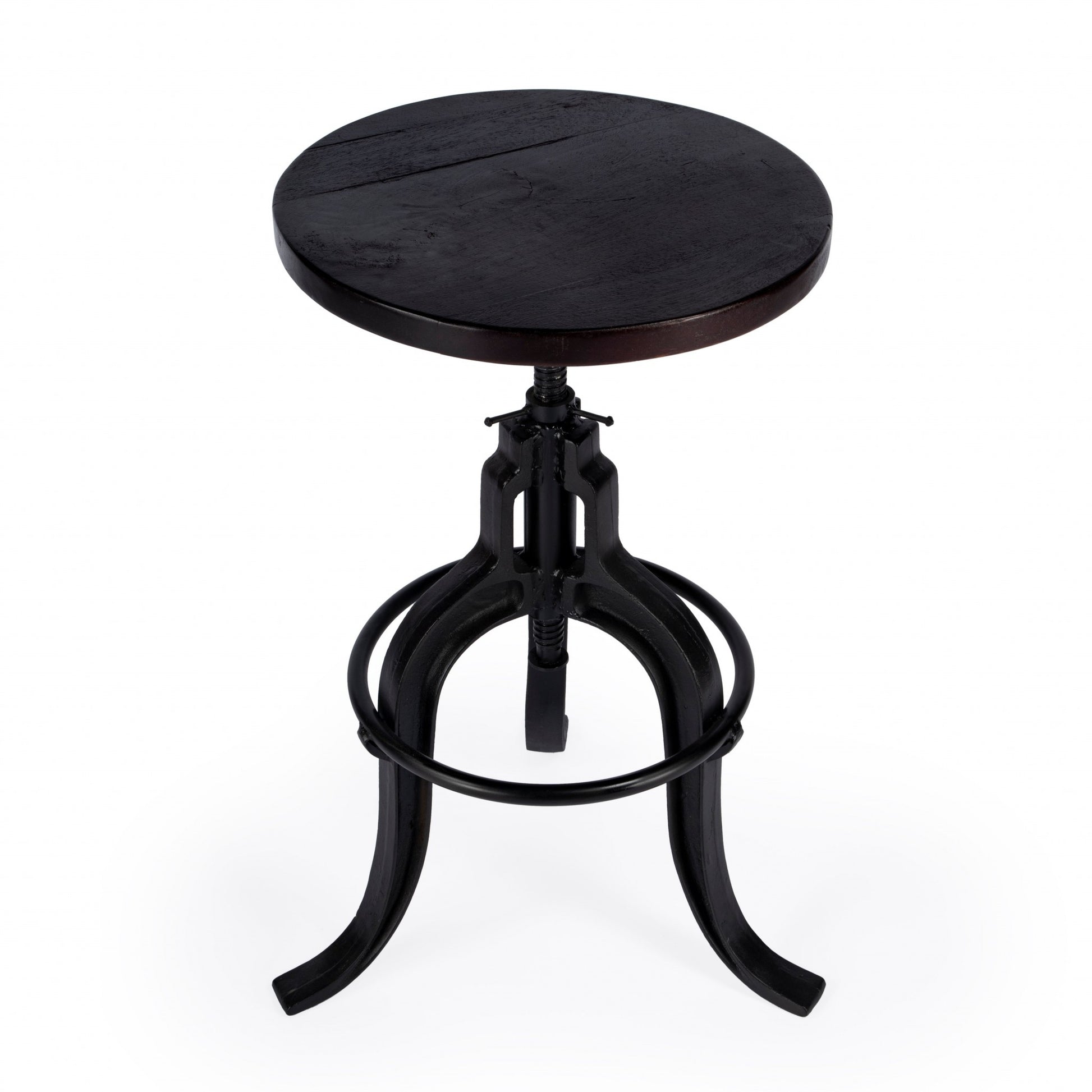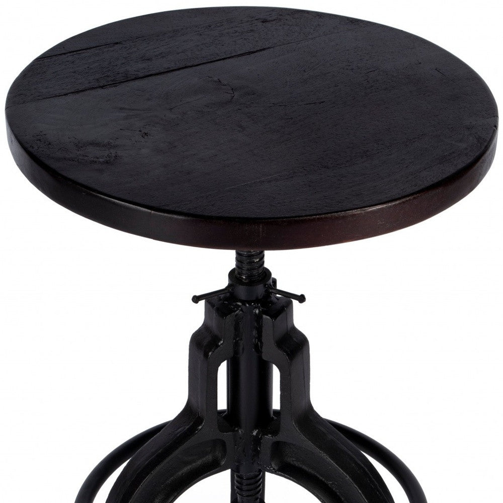 28" Brown And Black Iron Swivel Backless Bar Chair