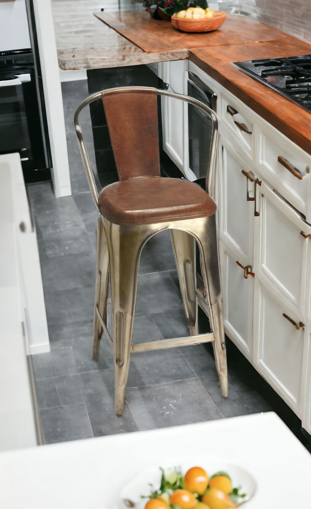 This 28-inch brown and gold iron bar chair with footrest will be the perfect way to add some cool design and utility to your space similar to what you find in your favorite cafes or pubs. Quality construction from gold iron combines with brown iron to give this stool a fresh and updated look. A full back mixed with a rectangle shaped seat design makes this chair both comfortable and fashionable. Designed with a footrest for comfort and convenience. 43-inch H x 21-inch W x 18-inch D
