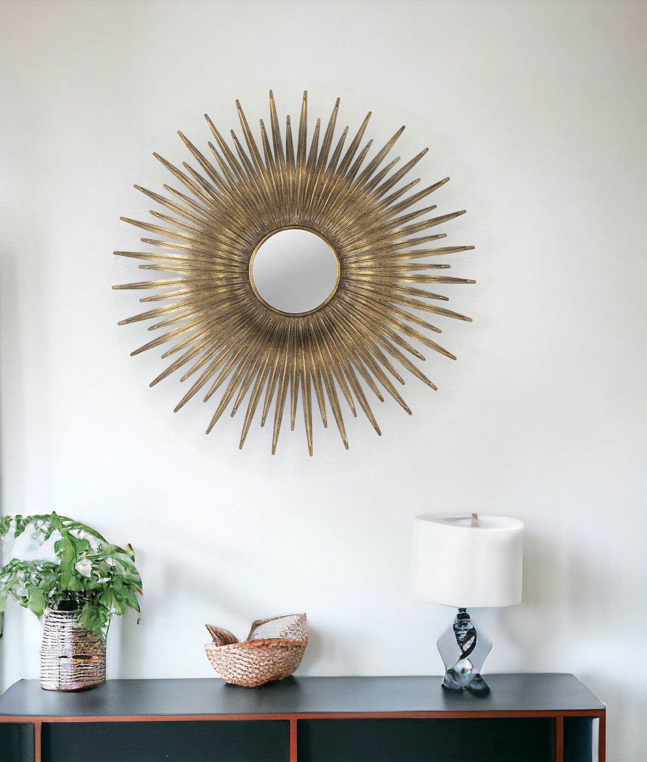 If you want to add some brightness to your living space, the gold sunburst framed accent mirror is perfect for you. The sunburst shaped mirror adds a nice touch of depth and texture and also makes it very practical. This mirror makes any room glow with its fantastic frame. Its style is certain to get rid of that trifling feel of boredom, and the quality of its finish and color will grant your place a flavor of fashion. This mirror can fit perfectly in any space and give that space a distinctive look. 28.3-inch H x 28.3-inch W x 2.2-inch D