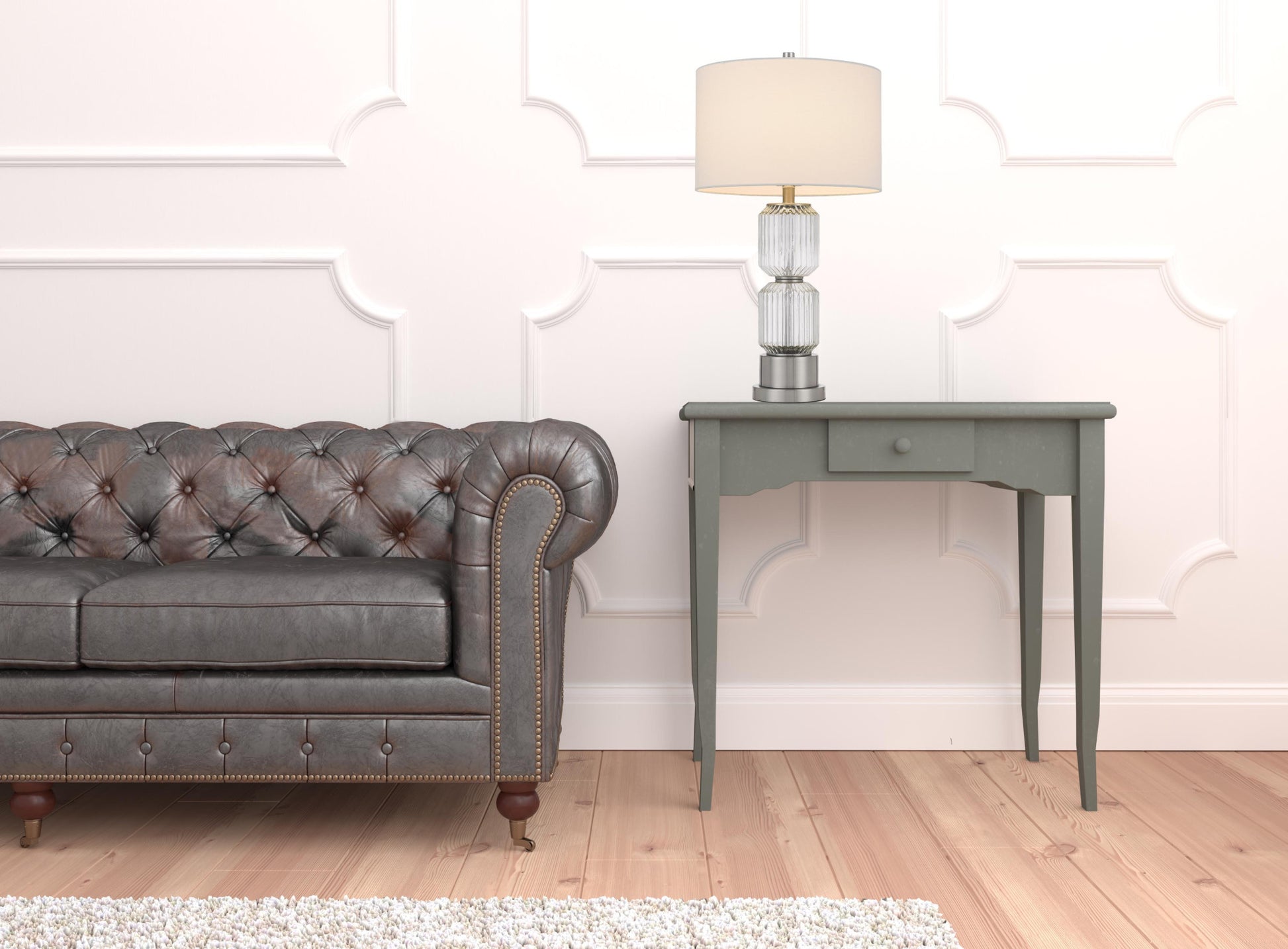 28" Nickel Metal Table Lamp With White Drum Shade