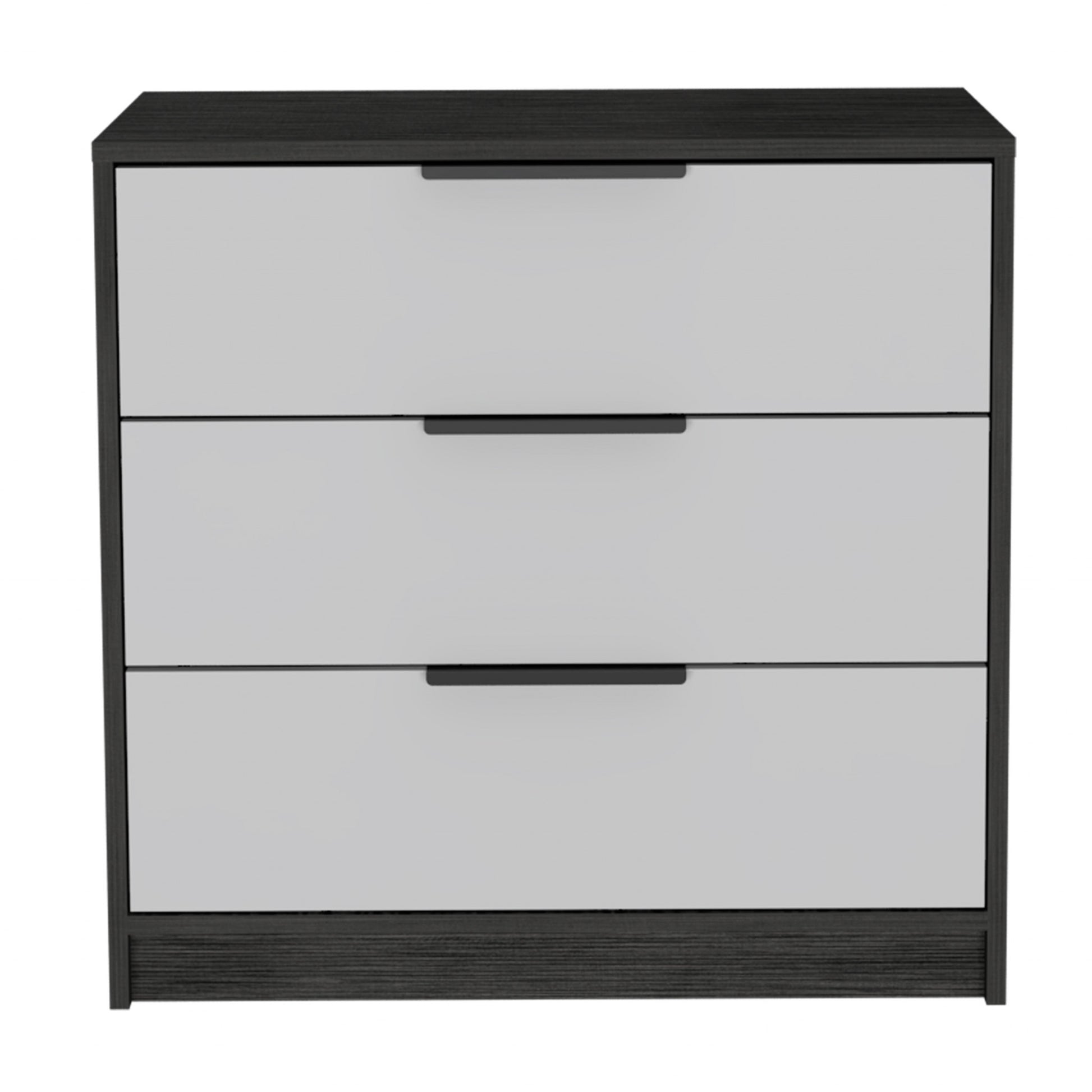 Make your room functional and visually enticing with this masterful 28" white and smokey oak manufactured wood three drawer standard dresser. This horizontal standard dresser has column style drawers and a wide top surface area to help you with your daily dressing essentials. Equipped with three easy open drawers for practical and good looking clothing storage. Its a high quality piece, made from high grade manufactured wood. 27" H x 27.6" W x 16.5" D