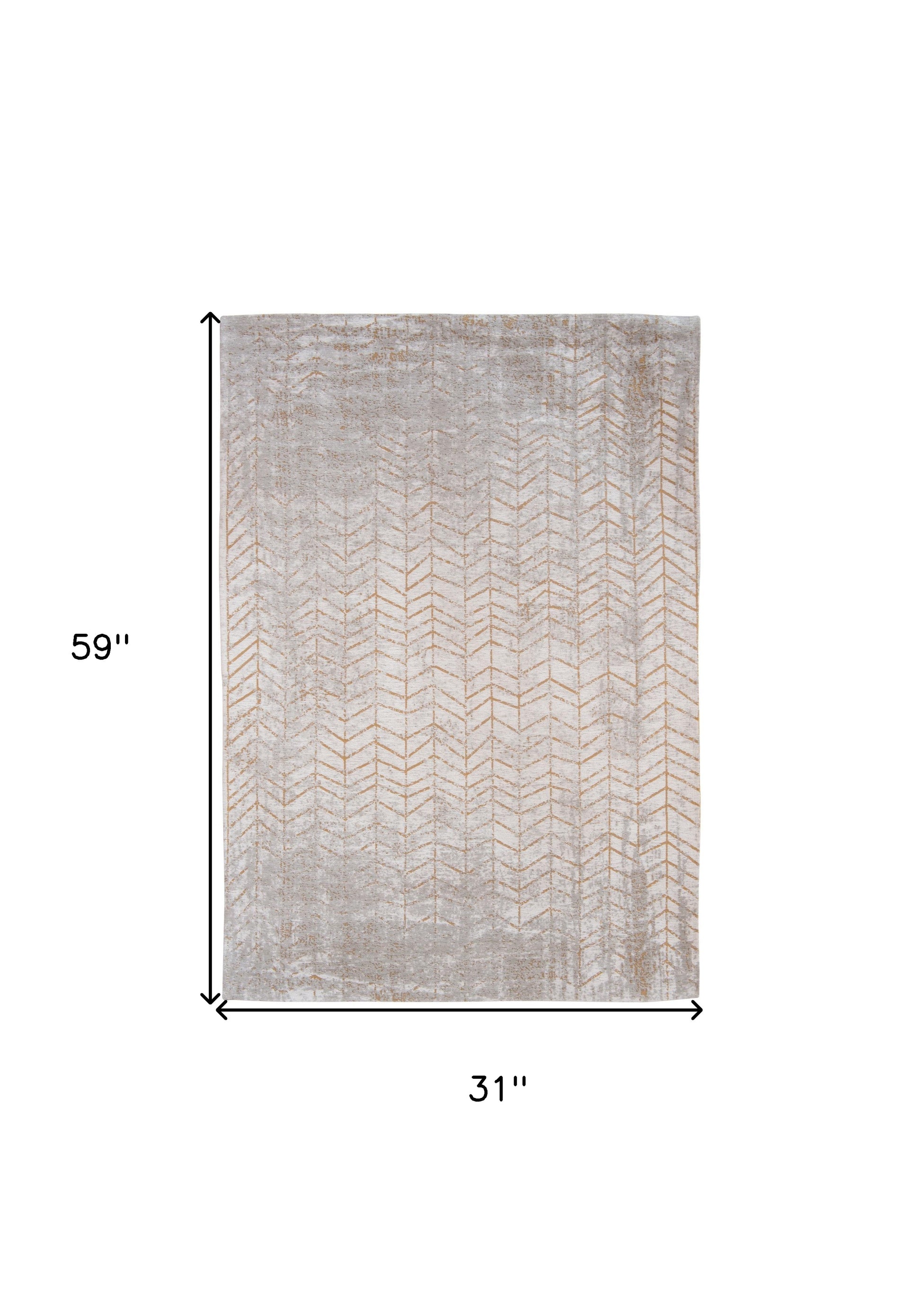 Set an inviting tone in your space with this 3-foot x 5-foot gray and yellow chevron non skid area rug. This rectangle shaped rug features a chevron design in gray and yellow to give it visual interest. A classic shape marries with good looking design for your space place this area rug against a hardwood or tile floor and it will enliven your living space with style and sophistication. 31-inch H x 59-inch W x 0.12-inch D