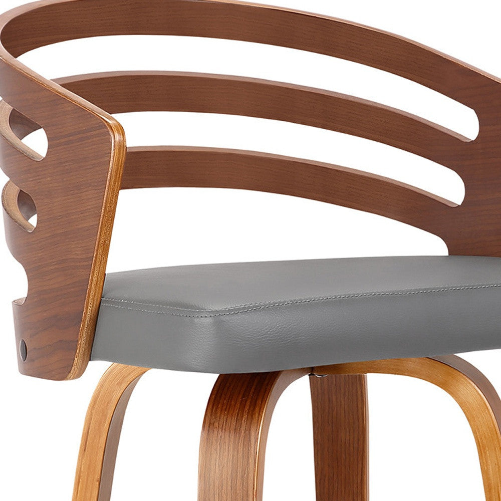 30" Gray And Brown Iron Swivel Low Back Bar Height Bar Chair