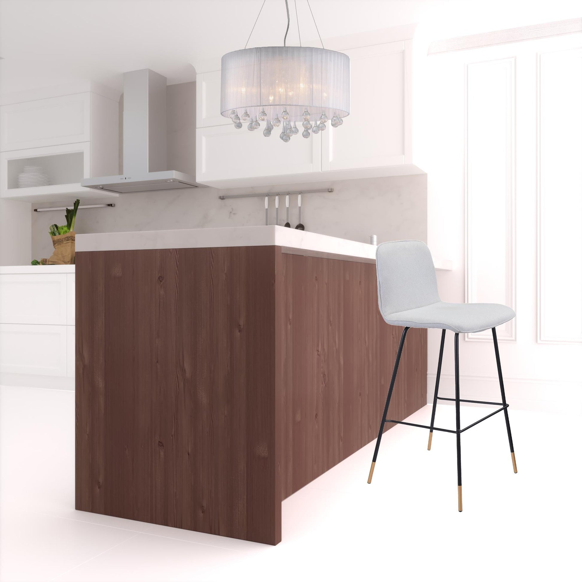 Comfortable enough to sit in for awhile, this 30-inch light gray and black steel low back bar height bar chair with footrest will transcend the look of your room. The base of this stool is made from steel in a black color that is a nice contrast to the light gray upholstered seat. The bucket shape of the seat combines with a low back to give this chair a comfortable and fashionable look. Designed with a footrest for comfort and convenience. 39.8-inch H x 17.7-inch W x 19.5-inch D