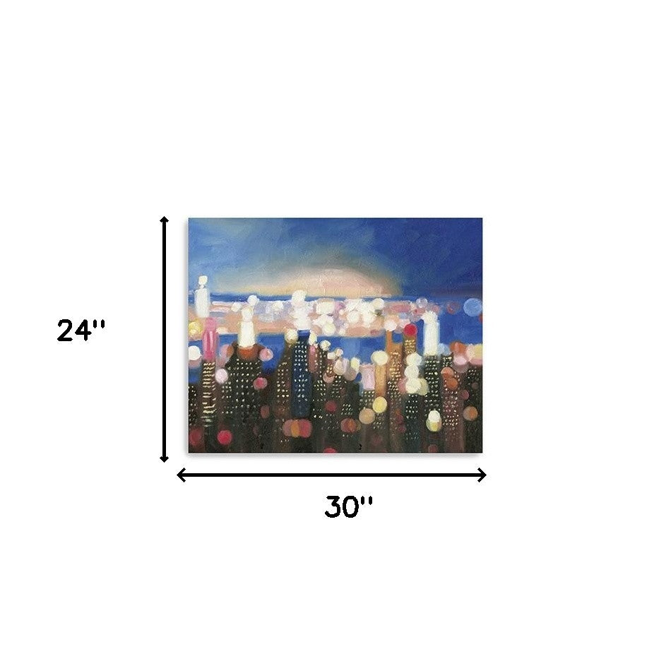 30" x 24" Watercolor City Lights on the Horizon Canvas Wall Art