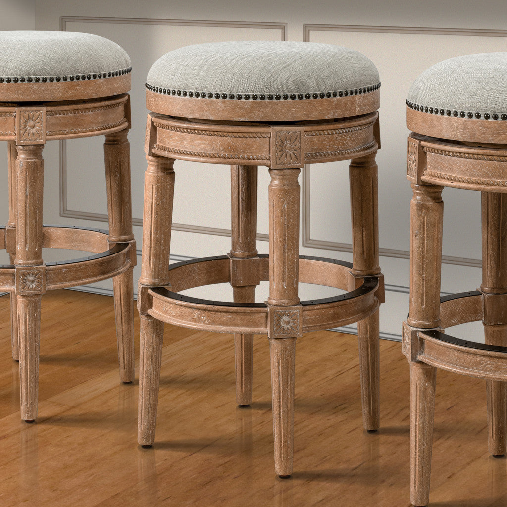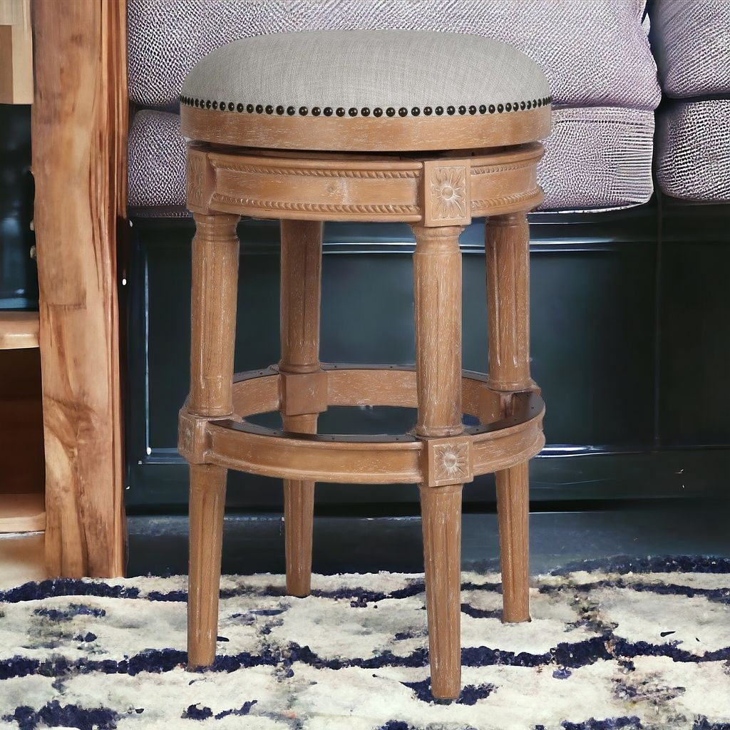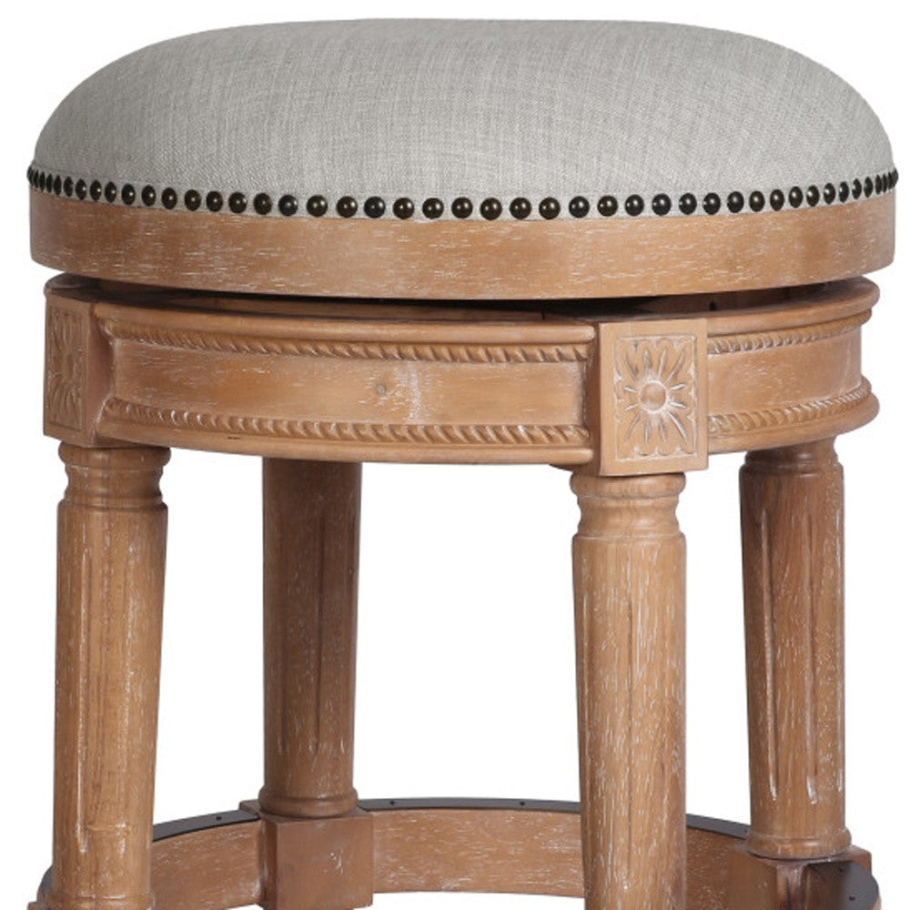 31" Beige And Natural Solid Wood Swivel Backless Bar Height Bar Chair