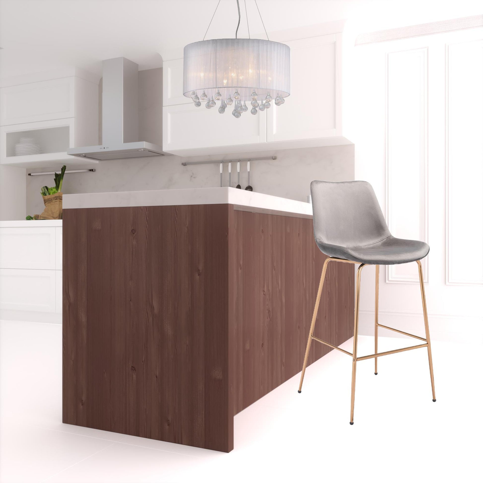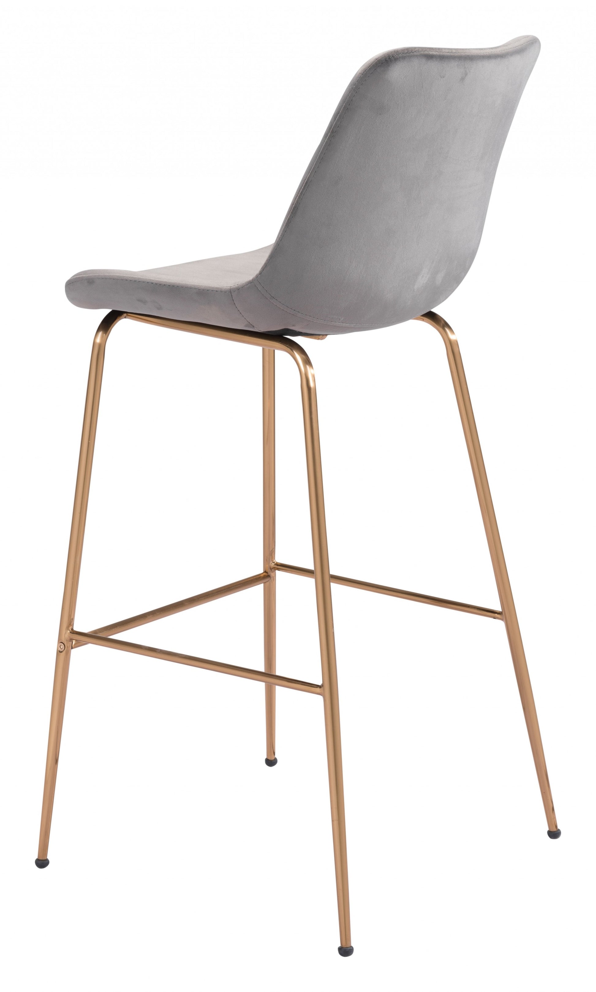 This 31-inch gray and copper steel low back bar height bar chair with footrest will be the perfect way to add some cool design and utility to your space similar to what you find in your favorite cafes or pubs. The gray upholstered seat of this stool is a nice contrast to the high quality, copper steel of the base. The bucket shape of the seat combines with a low back to give this chair a comfortable and fashionable look. Designed with a footrest for comfort and convenience. 43.1-inch H x 20.5-inch W x 22.2-inch D