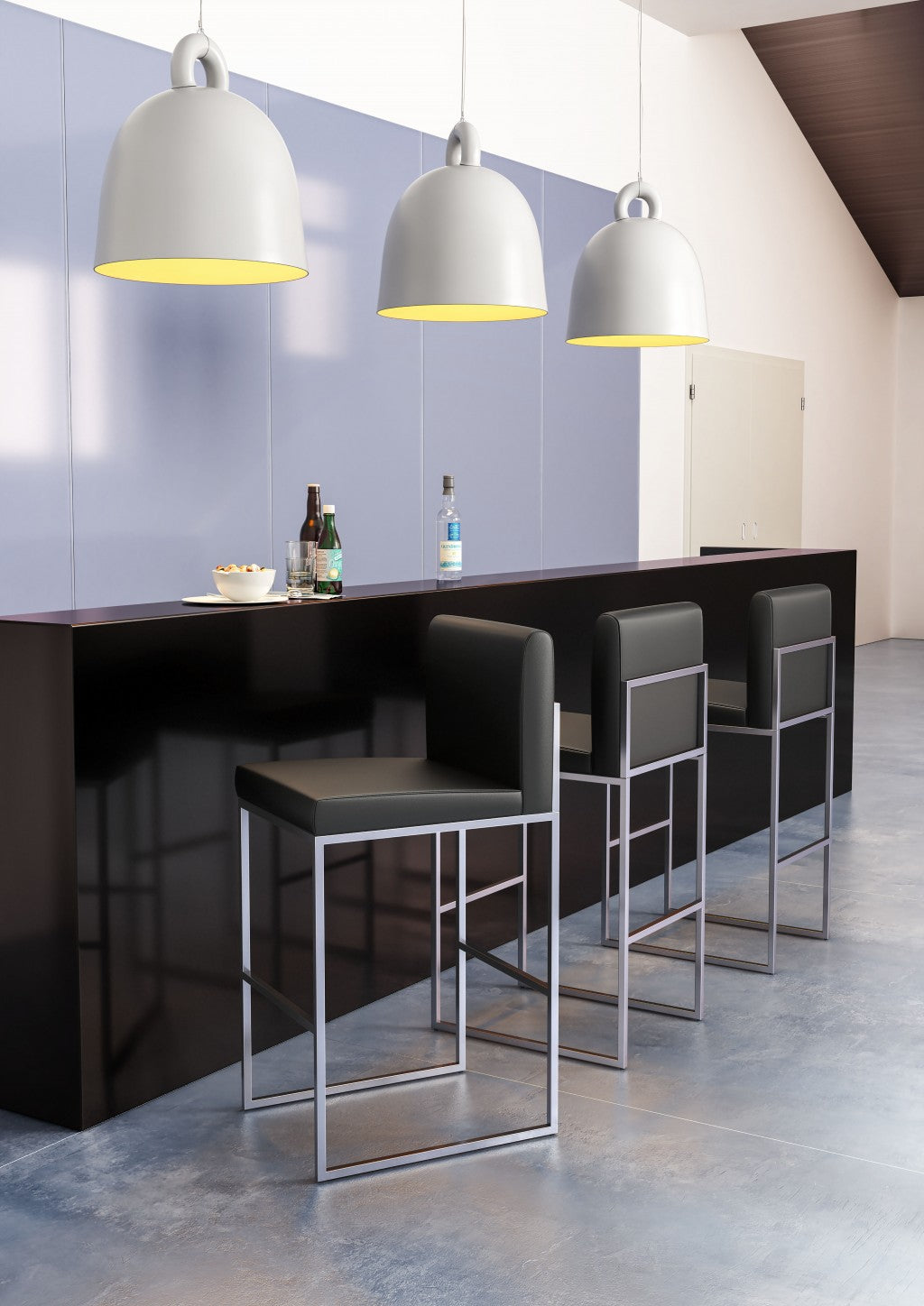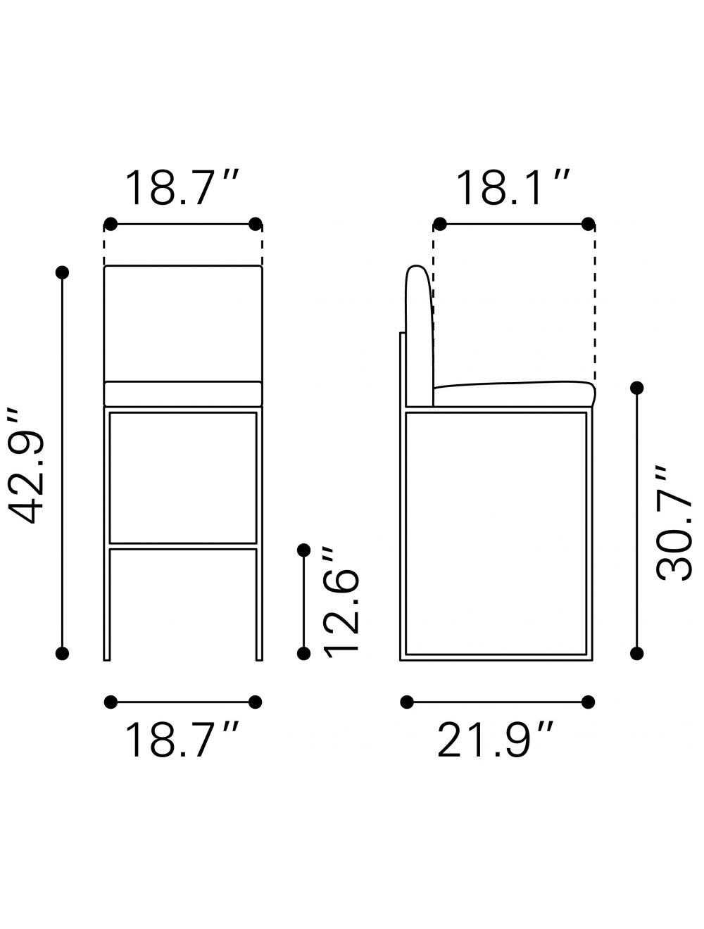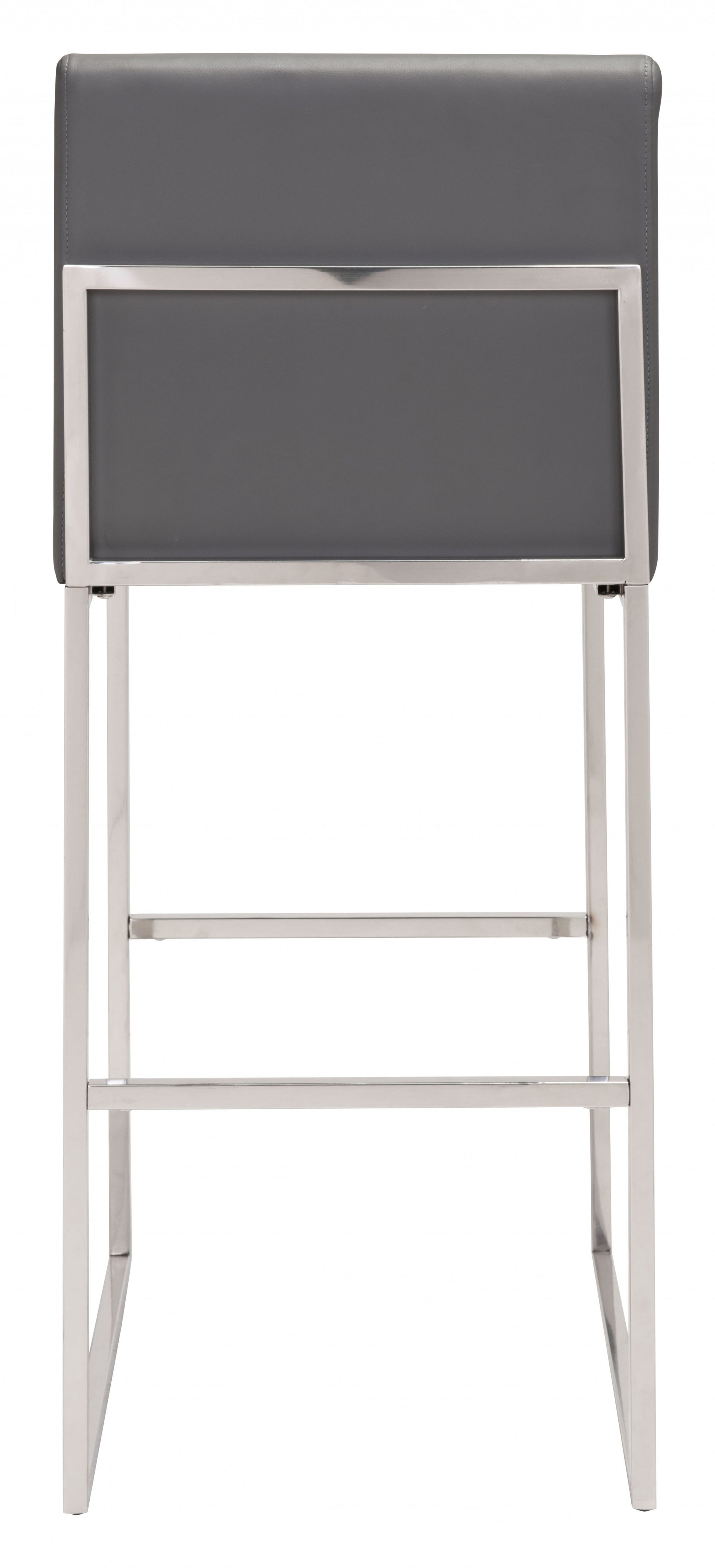 The perfect way to add some extra seating in your home, this 31-inch gray and silver faux leather and steel low back bar height bar chair with footrest will elevate the look and vibe of your room. The silver coloration of the high quality steel base marries nicely with the gray faux leather seat. Not only good looking and stylish, this chair features a bucket shaped seat and a low back for the ultimate in comfort and enjoyment. Designed with a footrest for comfort and convenience. 42.9-inch H x 18.7-inch W x 21.9-inch D