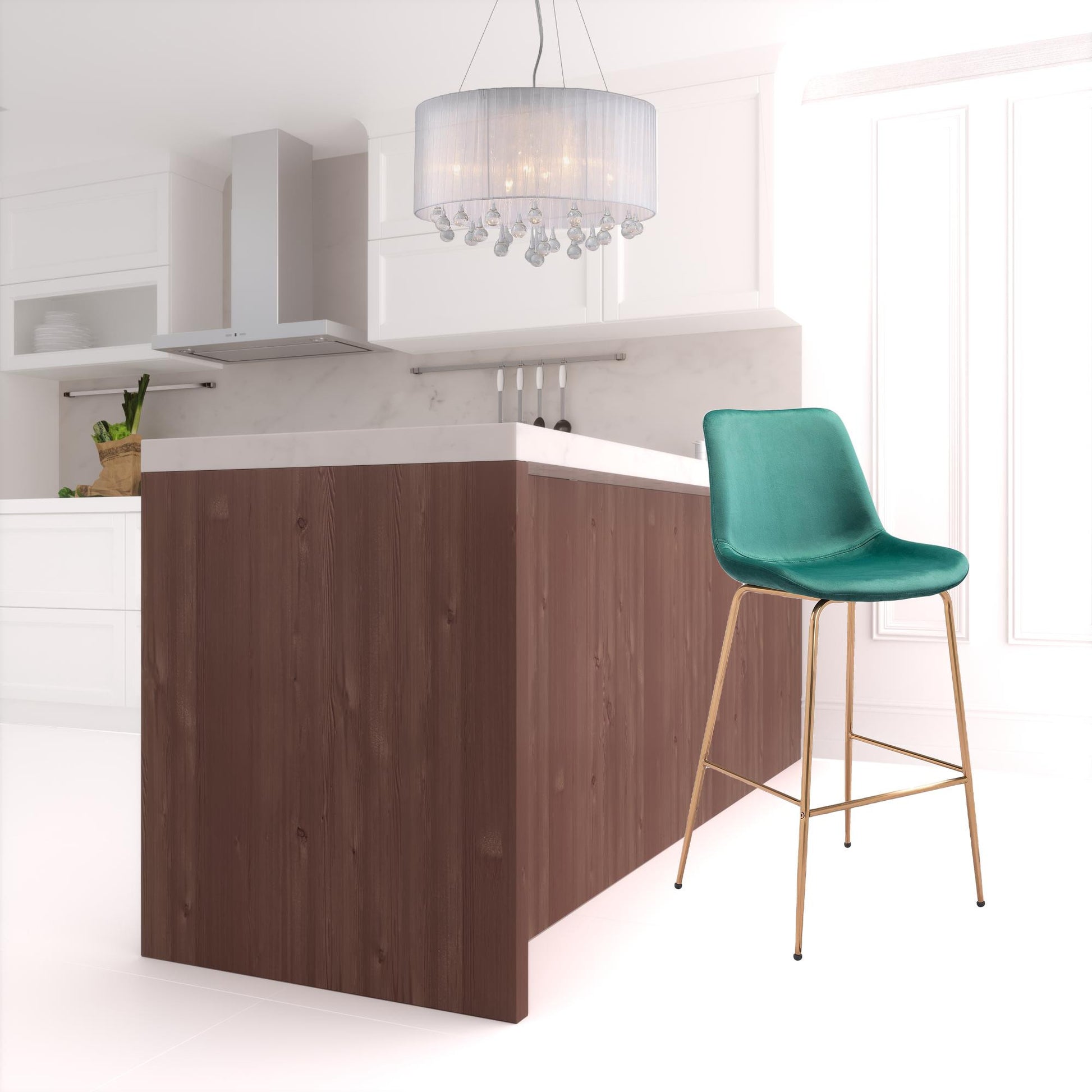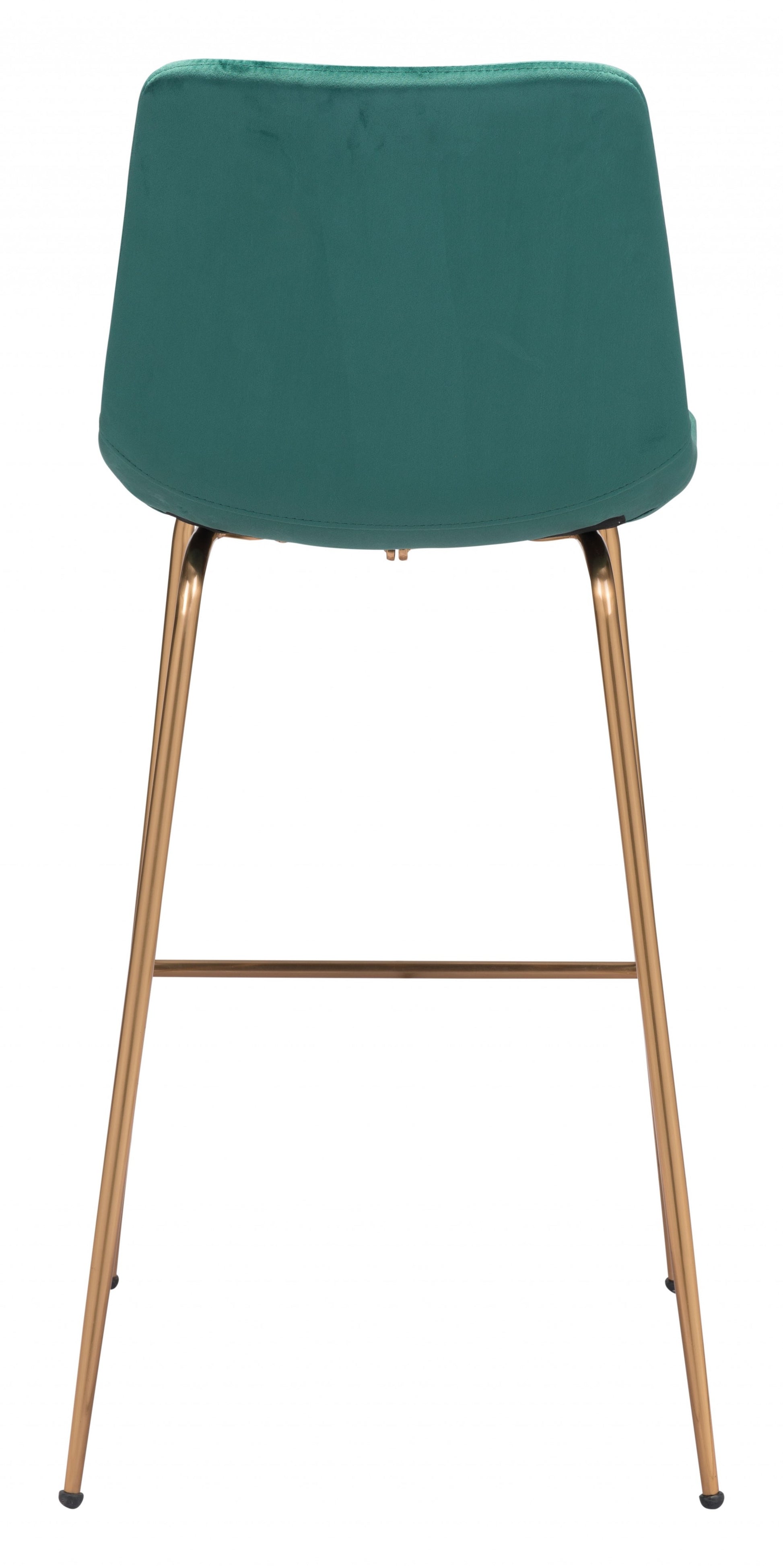 This 31-inch green and copper steel low back bar height bar chair with footrest will be the perfect way to add some cool design and utility to your space similar to what you find in your favorite cafes or pubs. The green upholstered seat of this stool is a nice contrast to the high quality, copper steel of the base. The bucket shape of the seat combines with a low back to give this chair a comfortable and fashionable look. Designed with a footrest for comfort and convenience. 43.1-inch H x 20.5-inch W x 22.2-inch D