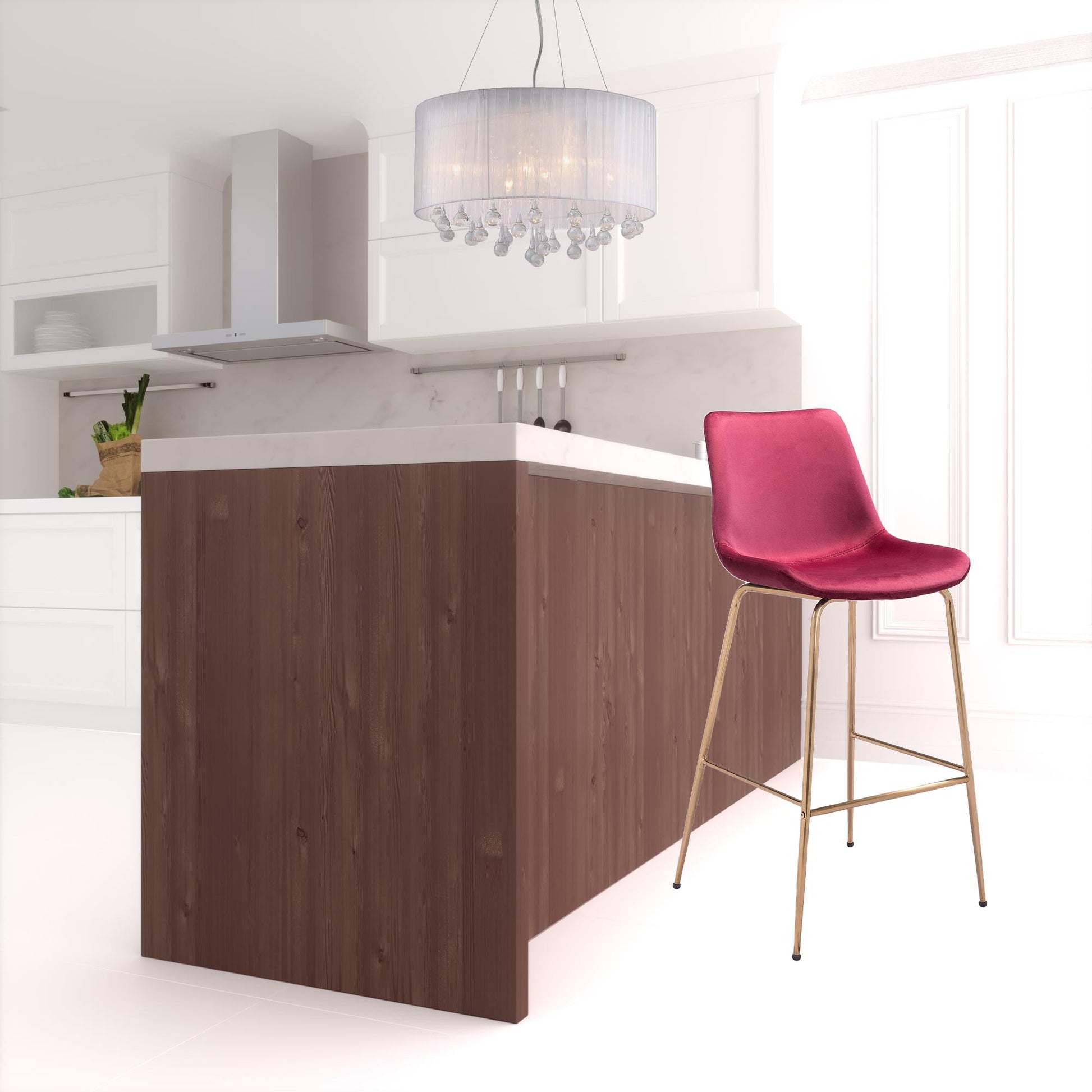 With this 31-inch red and copper steel low back bar height bar chair with footrest you can add design and extra seating to your space. Quality construction from copper steel combines with red upholstered to give this stool a fresh and updated look. Not only good looking and stylish, this chair features a bucket shaped seat and a low back for the ultimate in comfort and enjoyment. Designed with a footrest for comfort and convenience. 43.1-inch H x 20.5-inch W x 22.2-inch D
