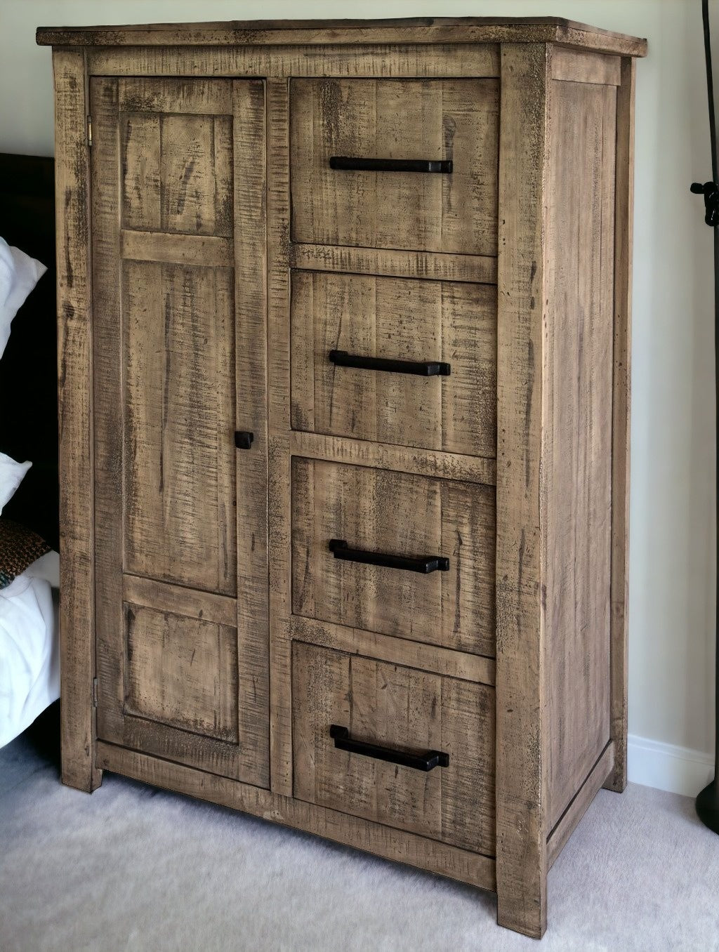 This 37" brown solid wood four drawer standard chest is a practical and good looking accent for your bedroom storage and organizational needs. This chest of drawers is tall and lean making it an ideal choice for smaller rooms or as an additional storage option in larger rooms. Equipped with four easy open drawers for practical and good looking clothing storage. This dresser is built to last from high quality solid wood,. 53.5" H x 36.5" W x 18" D