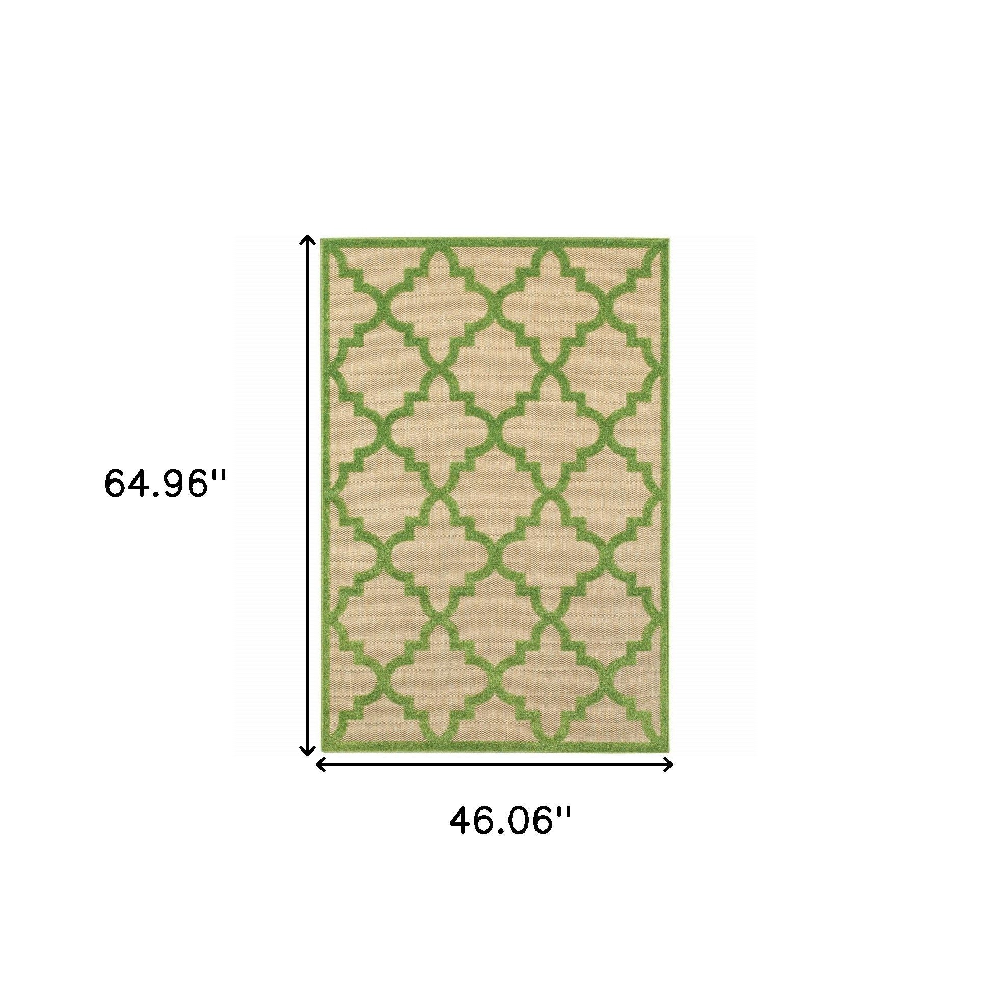 4' x 5' Green Geometric Stain Resistant Indoor Outdoor Area Rug