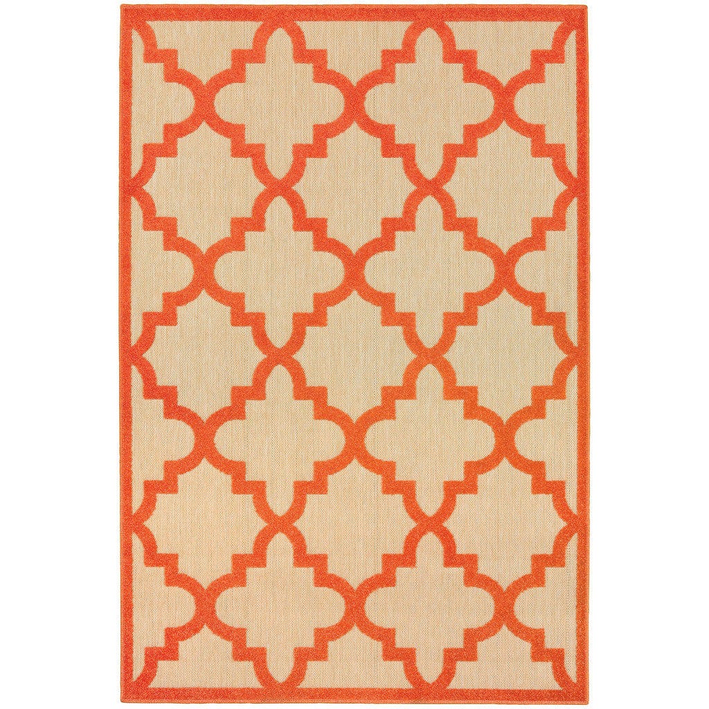 4' x 5' Orange Geometric Stain Resistant Indoor Outdoor Area Rug