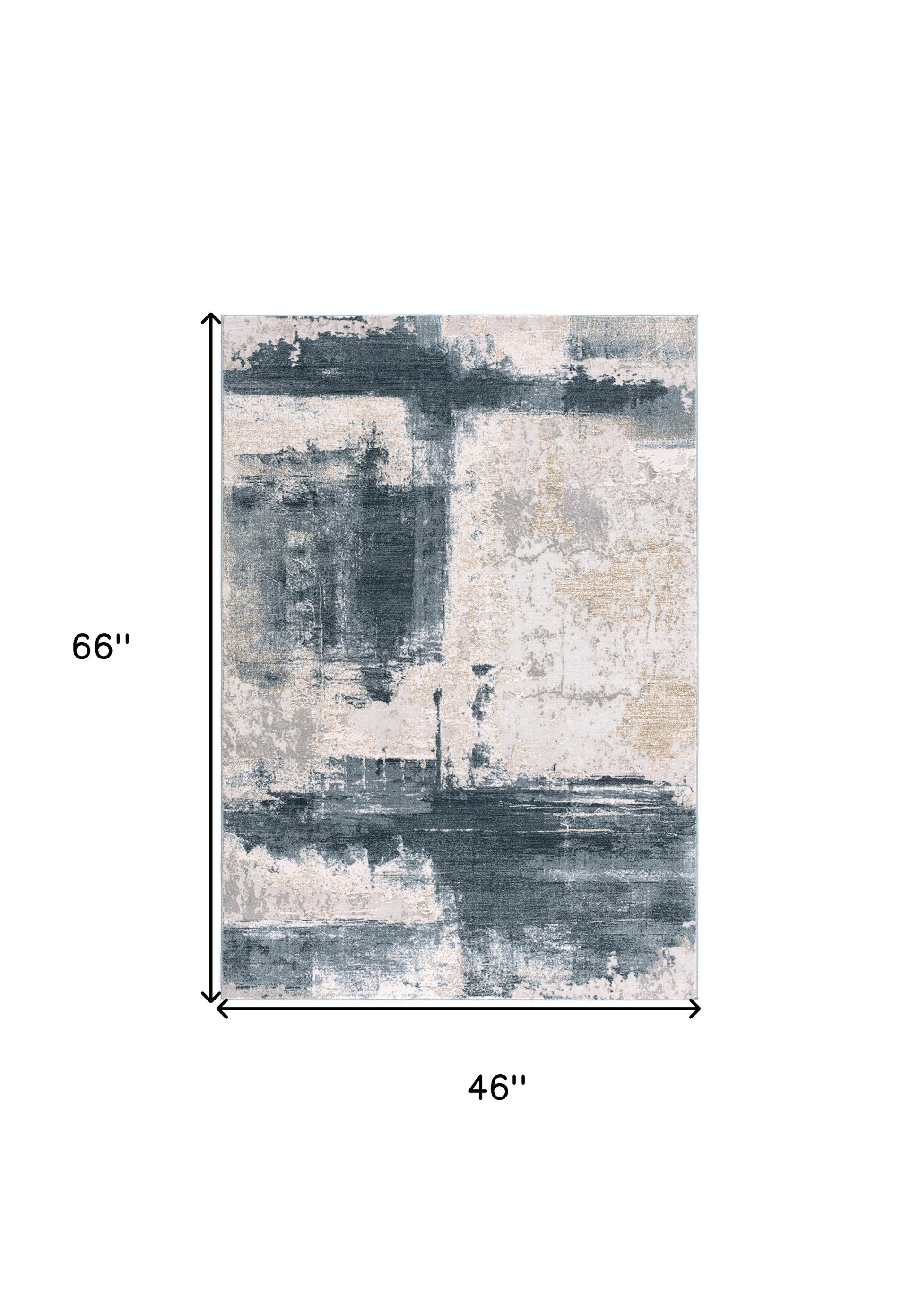 4' X 6' Blue And Beige Abstract Washable Non Skid Area Rug