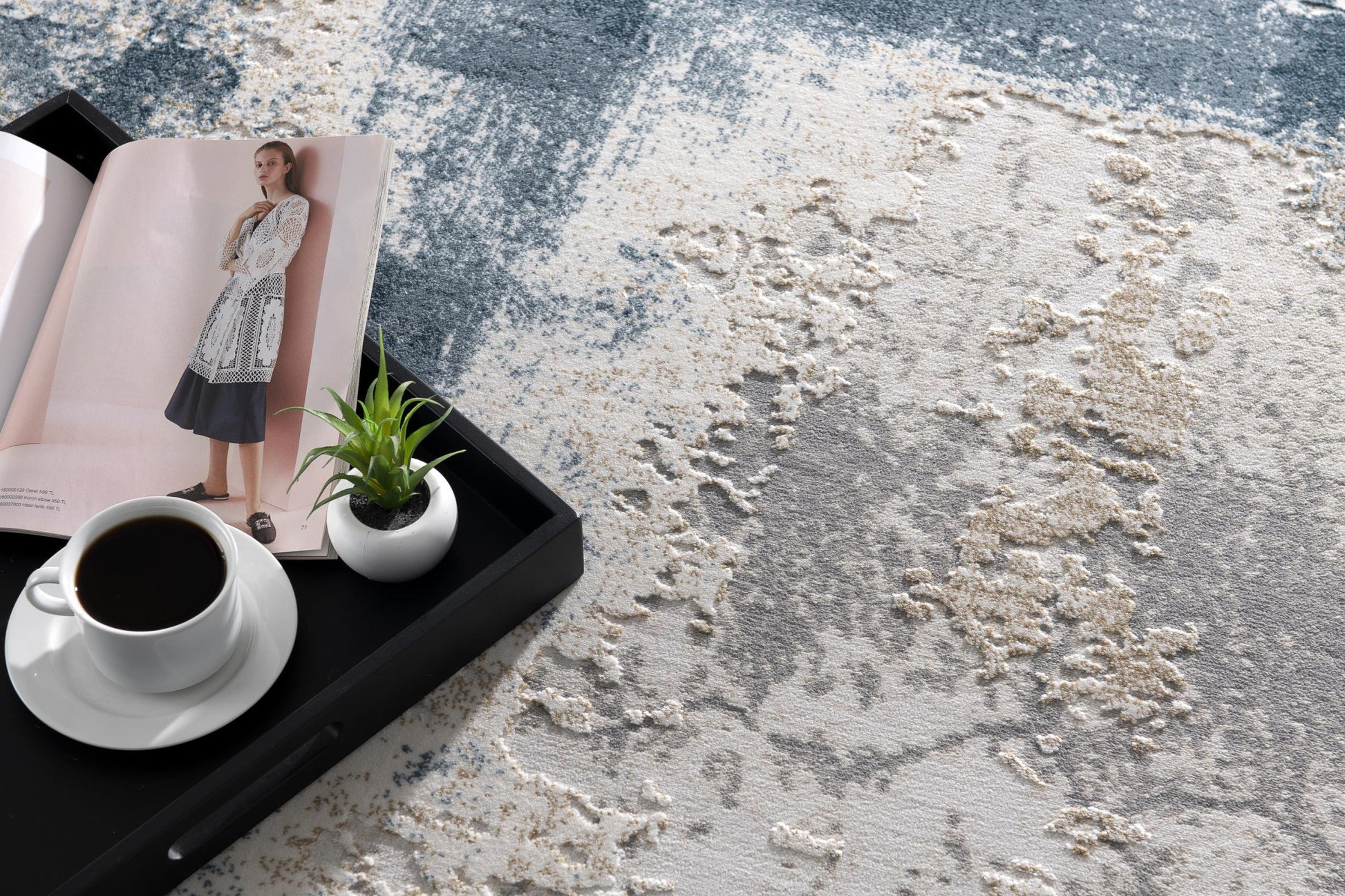 Add great coloration and comfortable texture to your space with this 4' x 6' blue and beige abstract washable non skid area rug. This rectangle shaped rug features a abstract design in blue and beige to give it visual interest. A classic shape marries with good looking design for your space This superior Turkish rug represents the highest quality and is built to last. Area Rugs help to give warmth and sense of home to your space. 0.8" H x 46" W x 66" D