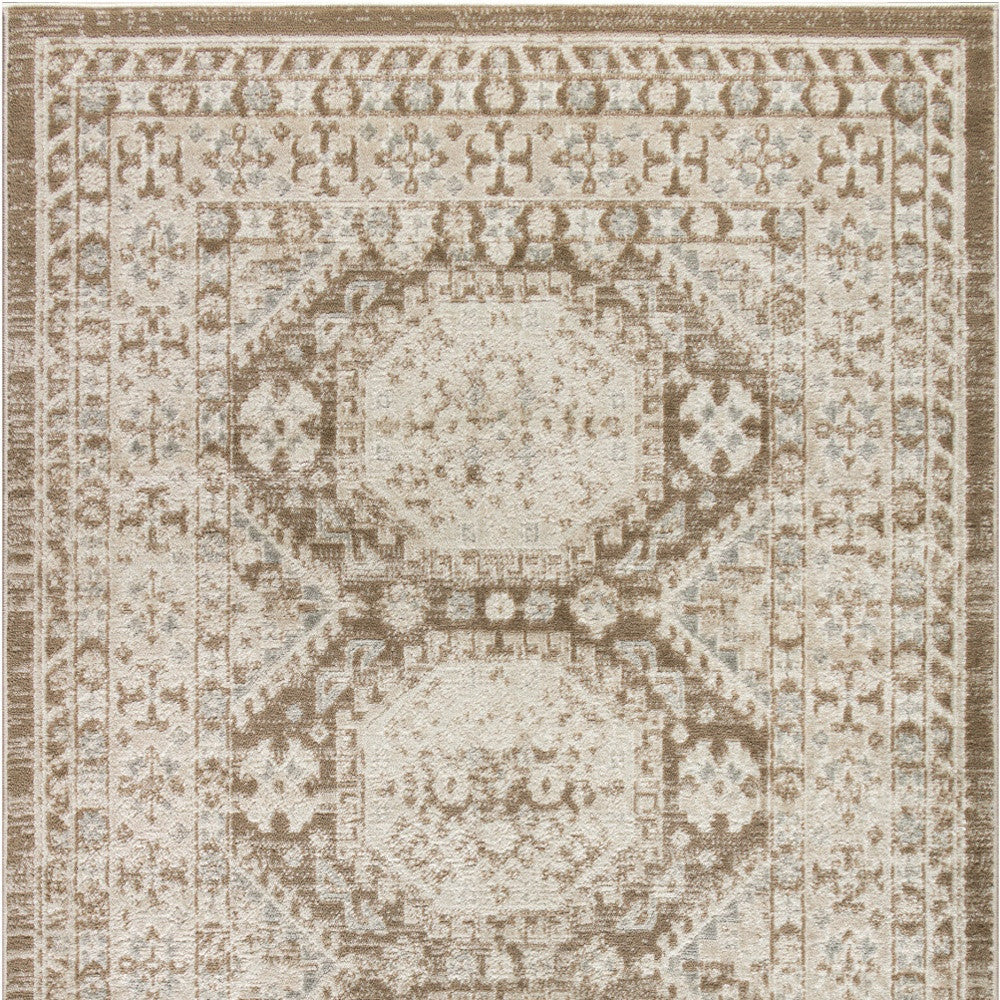 Add some artistry to your room with this 4-foot x 6-foot brown geometric distressed area rug. This rectangle shaped rug features a geometric design in brown to give it visual interest. A classic shape marries with good looking design for your space area rugs help to give warmth and sense of home to your space. 47-inch H x 71-inch W x 0.35-inch D