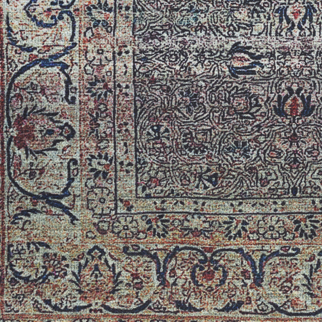 4' x 6' Ivory Blue and Gray Oriental Power Loom Distressed Washable Non Skid Area Rug