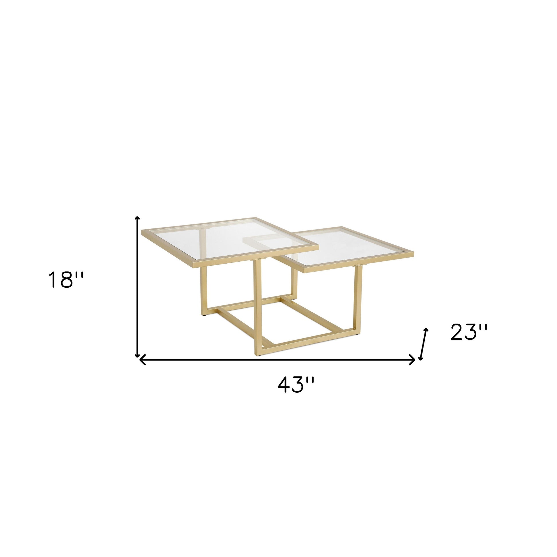 43" Gold Glass And Steel Square Coffee Table With Two Shelves