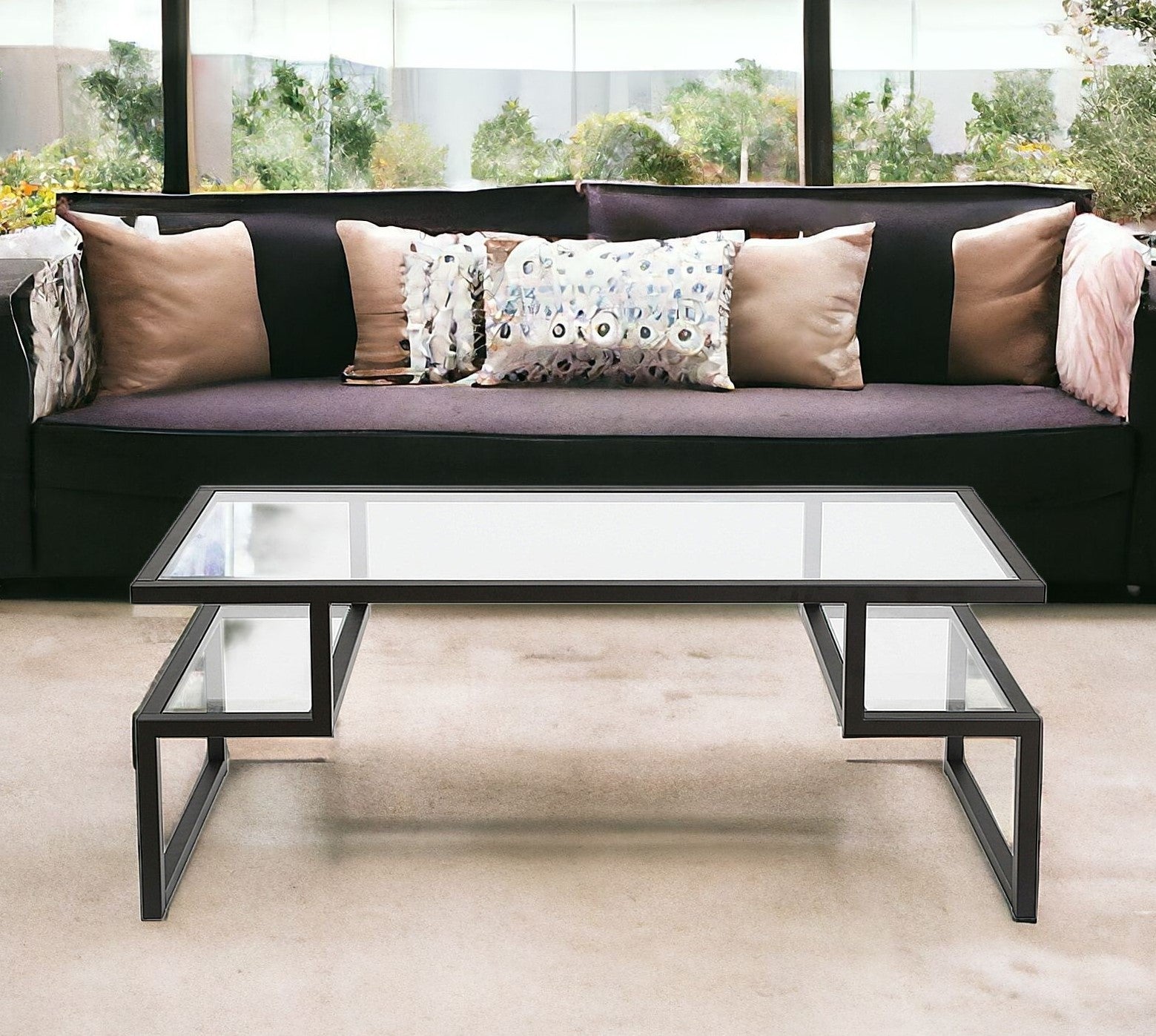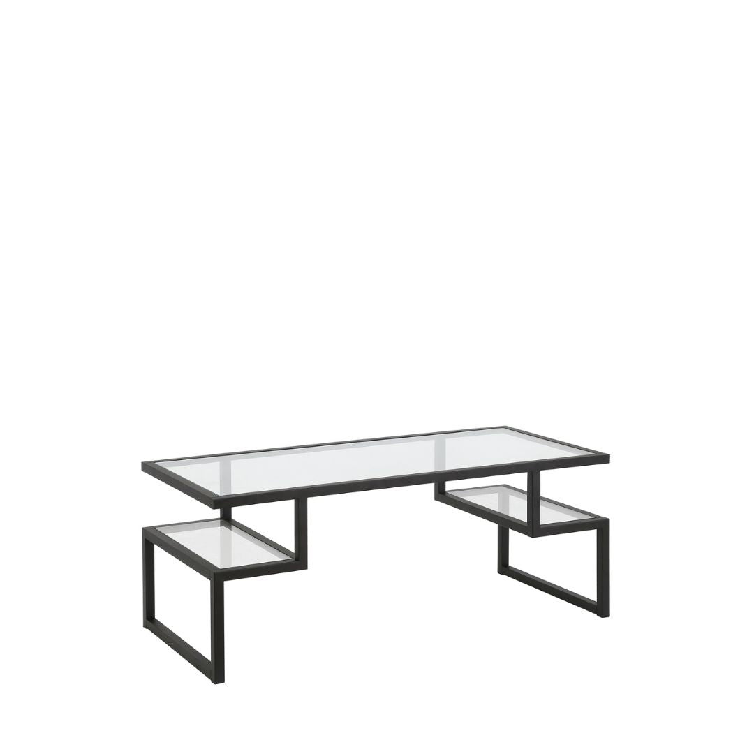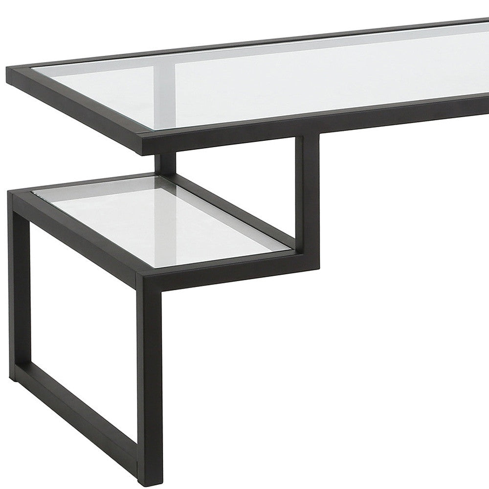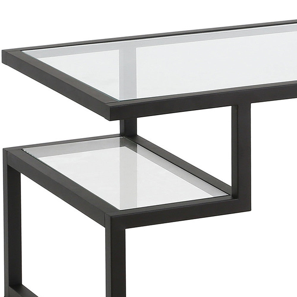 45" Black Glass And Steel Coffee Table With Two Shelves