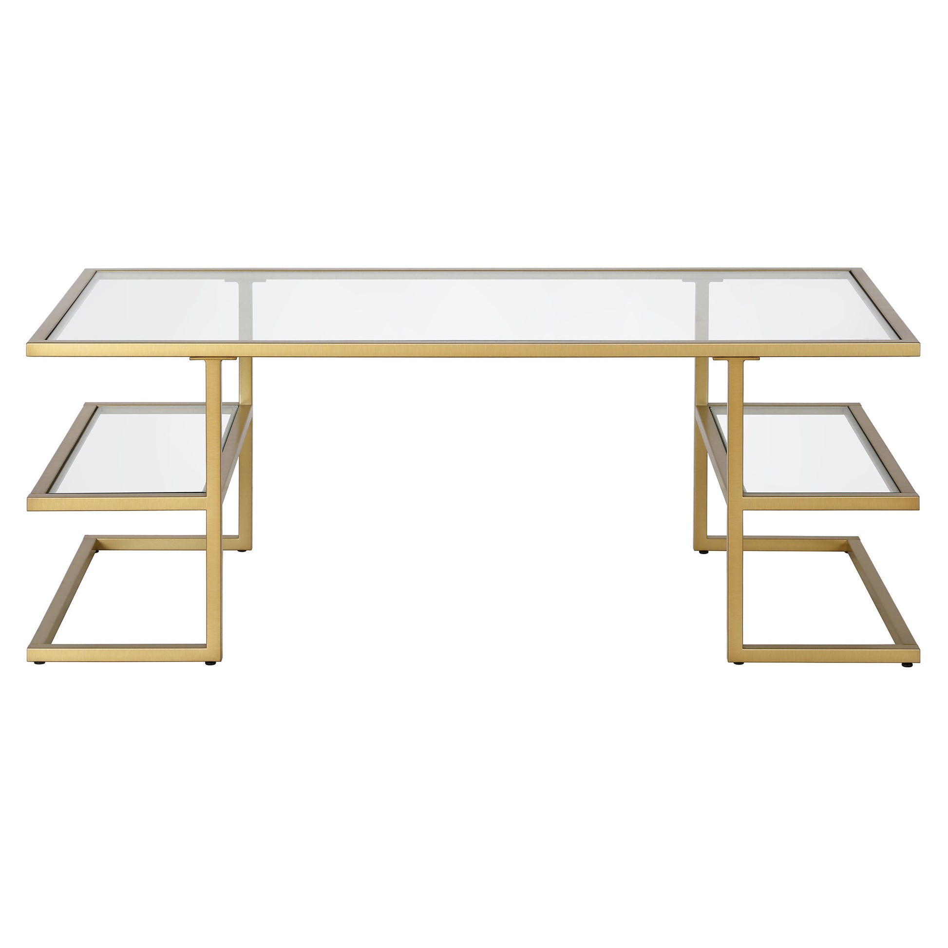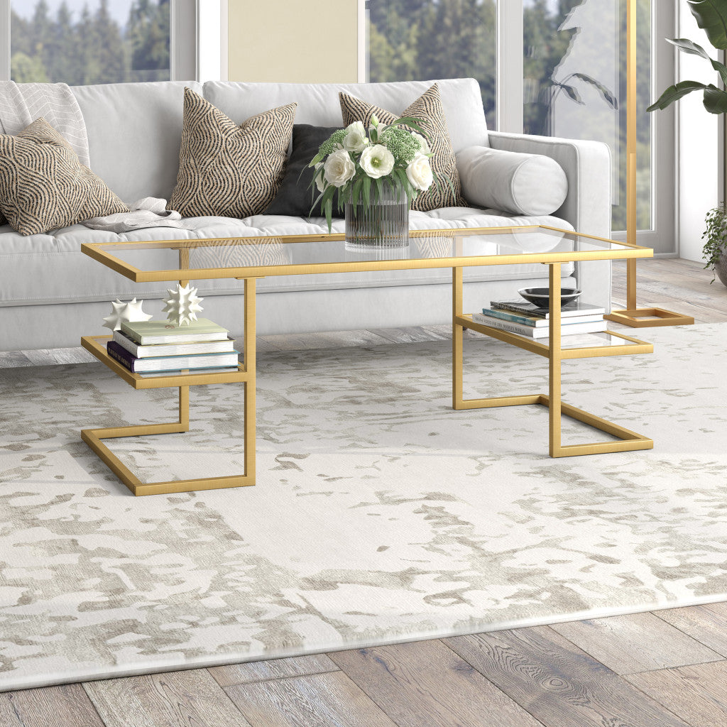 47" Gold Glass And Steel Coffee Table With Two Shelves