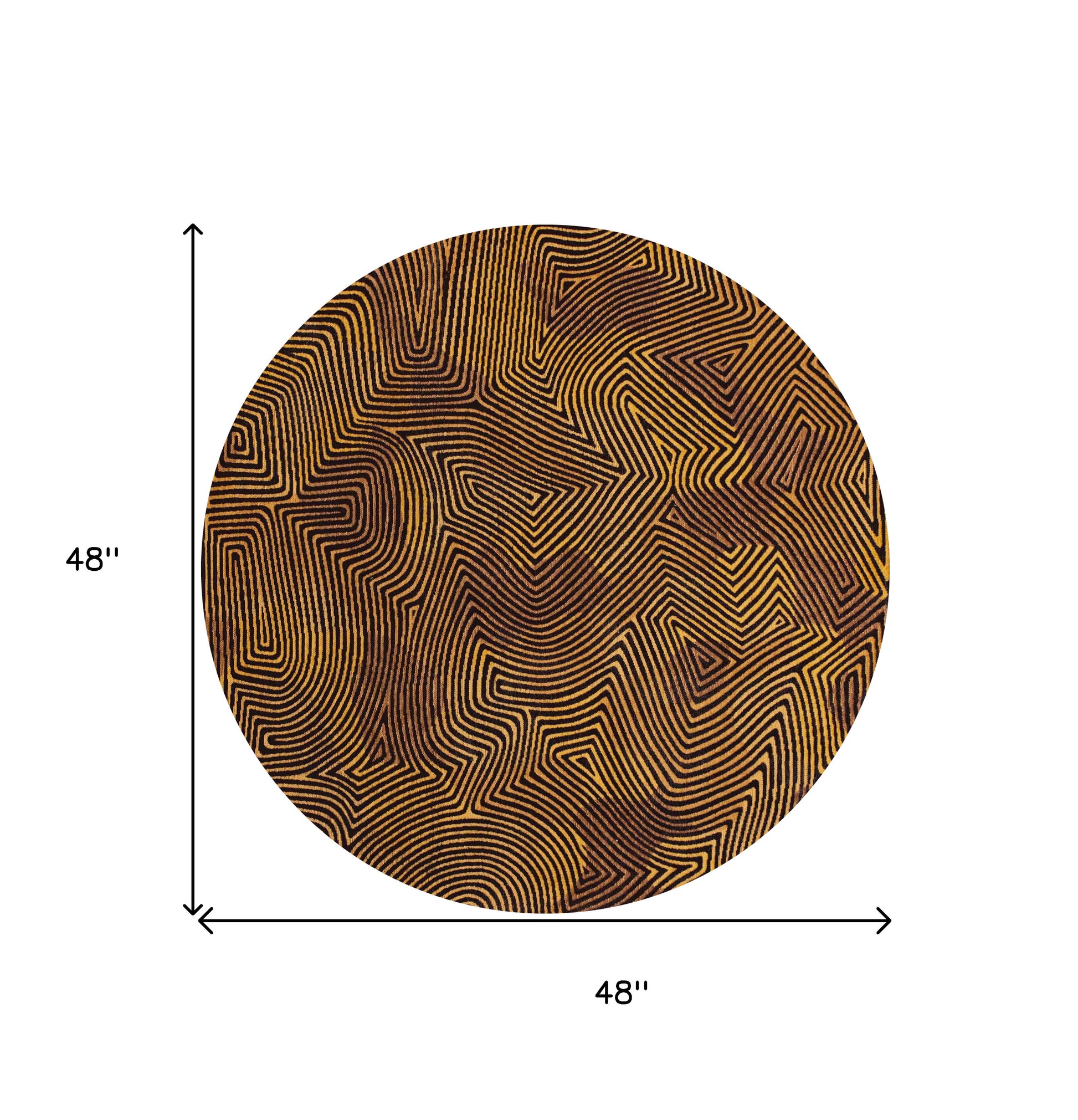 5' Black and Gold Round Abstract Non Skid Area Rug