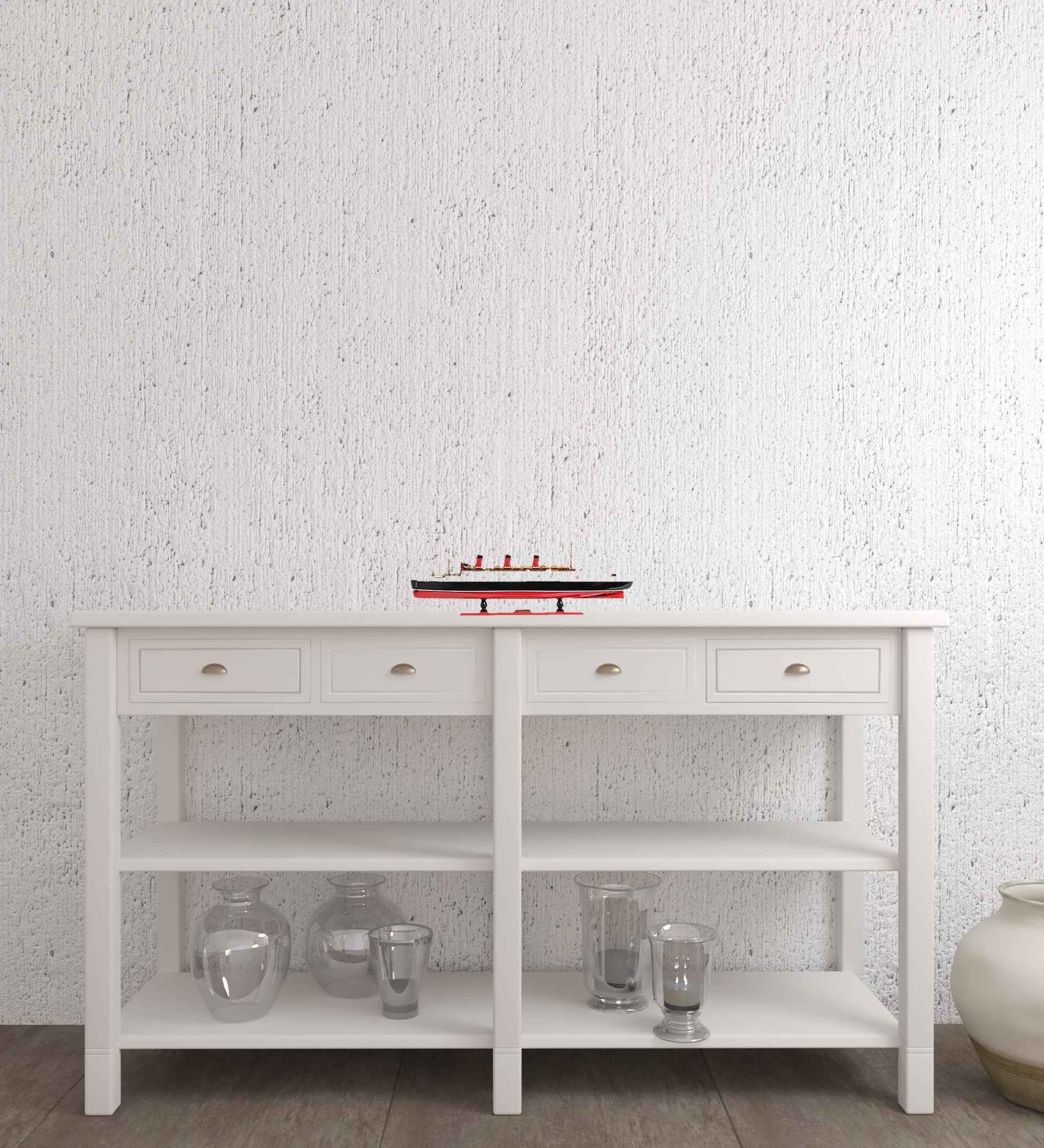 The 5" black and red rms queen mary boat hand painted decorative boat is the perfect decorative accessory for your home. This black and red colored piece is made from high grade manufactured wood. Great to use on its own or mix with other decorations for the perfect look. Use this piece as bookshelf decor, on your desk, coffee table, or anywhere in your home. 4.5" H x 32" W x 10.5" D