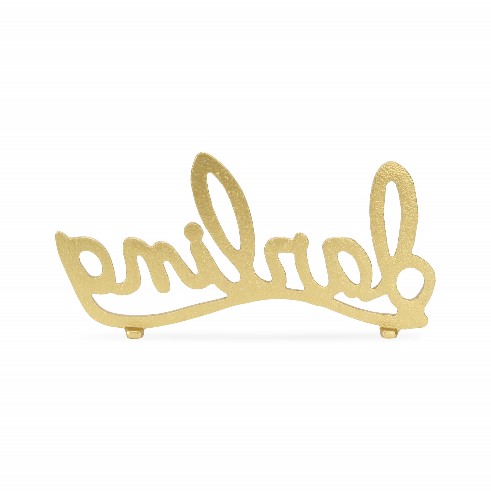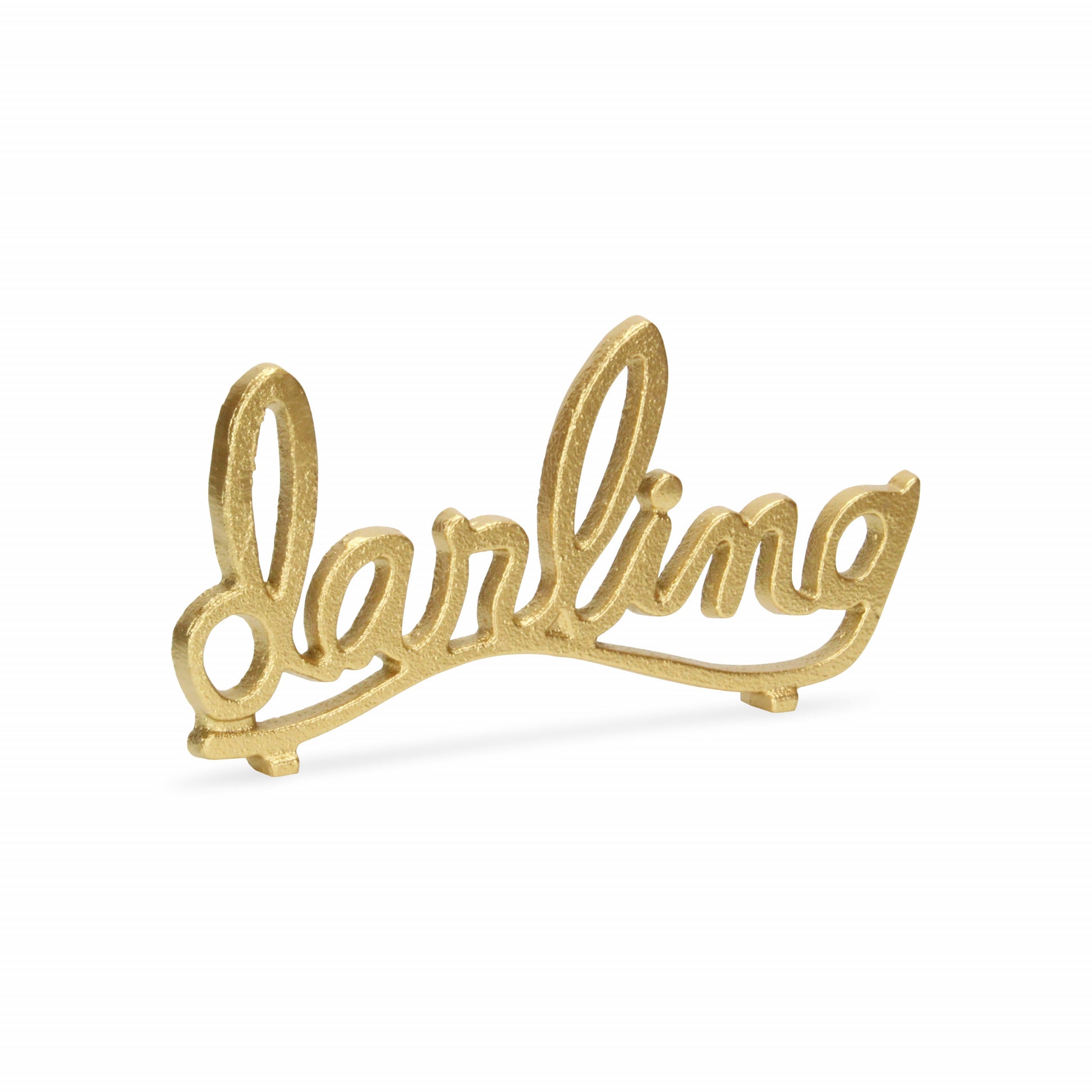 Bring some sizzle to your space with this eye-catching 5" gold cast iron hand painted darling tabletop sculpture. This gold colored piece is made from high grade cast iron. This beautiful and sentimental sculpture makes a great tabletop accent for your coffee table, counter, bookshelf, mantle, or even dining table. Great to use on its own or mix with other decorations for the perfect look. Use this piece as bookshelf decor, on your desk, coffee table, or anywhere in your home. 4.75" H x 9.75" W x 0.5" D