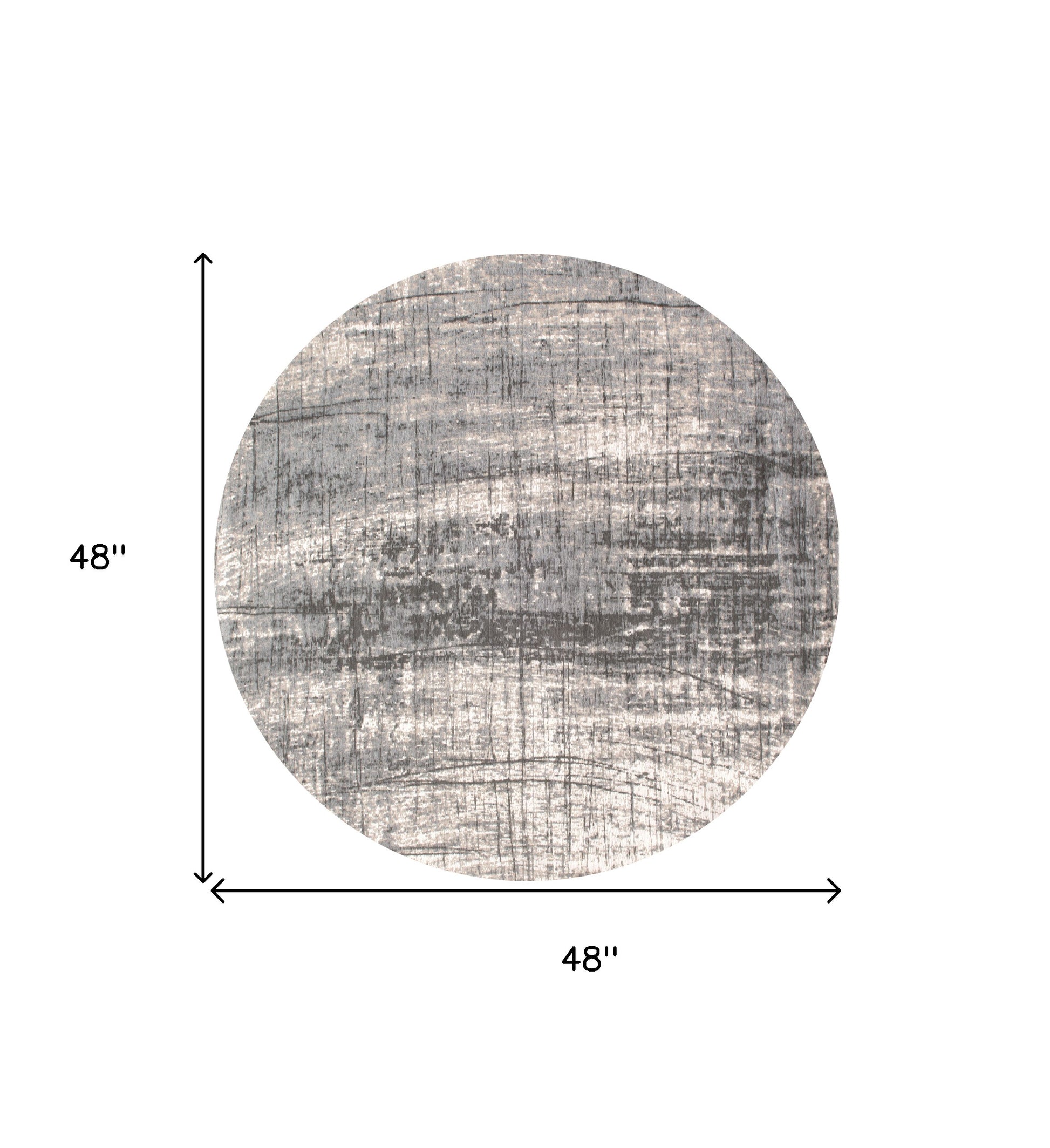 Add some artistry to your room with this 5-foot gray and white round abstract non skid area rug. This geometric round shaped rug features a abstract pattern in gray and white that combines a good looking print with a unique and updated shape. The mix of shape, color, and design gives this rug refreshing visual interest. The coloring of this rug adds a delightfully neutral tone to your home and will easily match with most any decor. Area rugs help to give warmth and sense of home to your space. 48-inch H x 48-inch W x 0.12-inch D