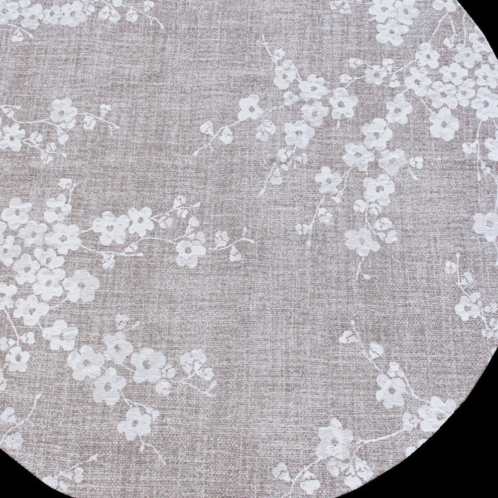 5' Gray and White Round Oriental Non Skid Area Rug