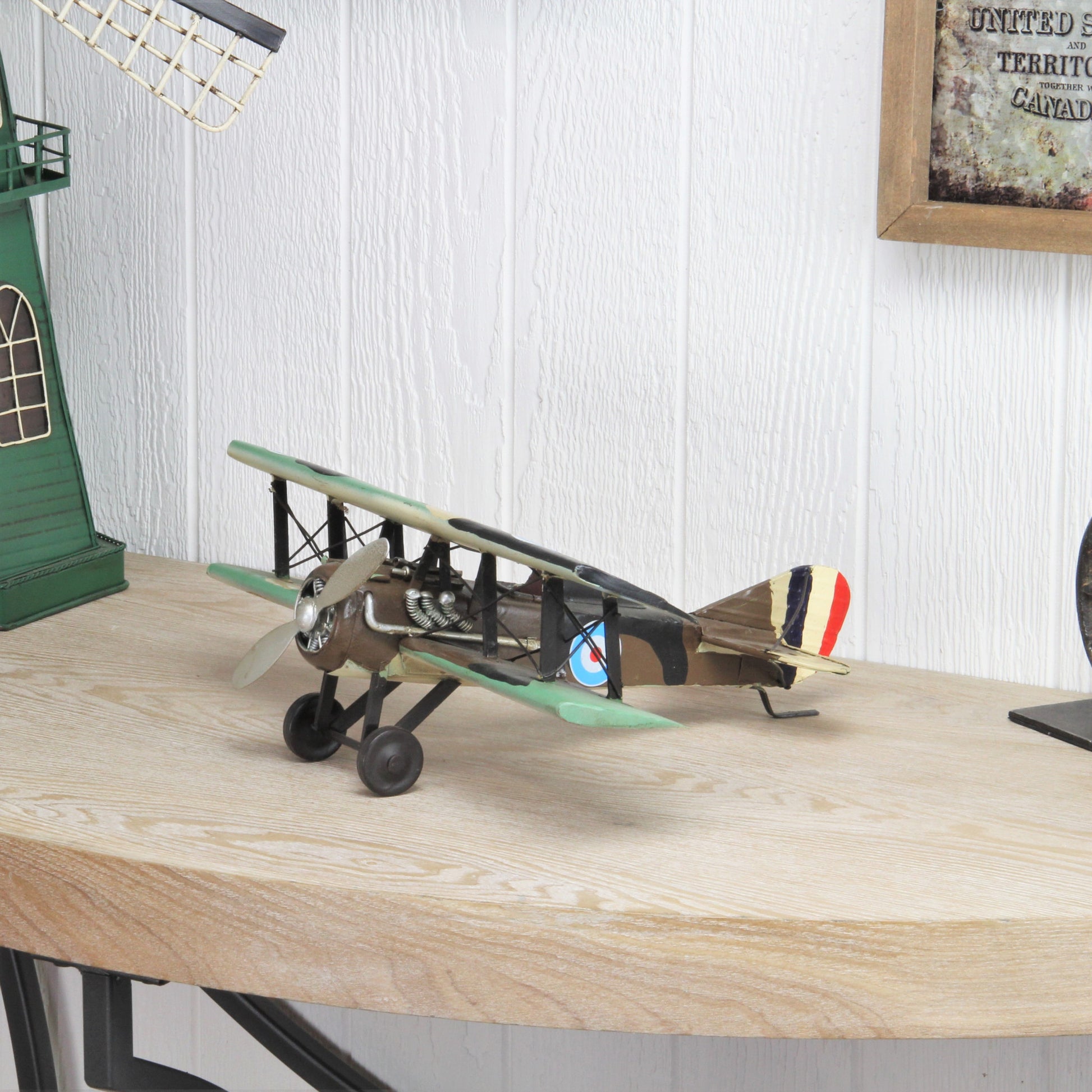 The 5-inch green metal hand painted model airplane is the perfect decorative accessory for your home. This charming decorative accent is expertly made of high grade metal in a green coloration. This replica makes a great tabletop accent for your coffee table, desk, bookshelf, dresser or mantle. A perfect decorative addition for anyone who loves nostalgia and vintage style models and replicas. Great to use on its own or mix with other decorations for the perfect look. 5-inch H x 11.5-inch W x 13.5-inch D