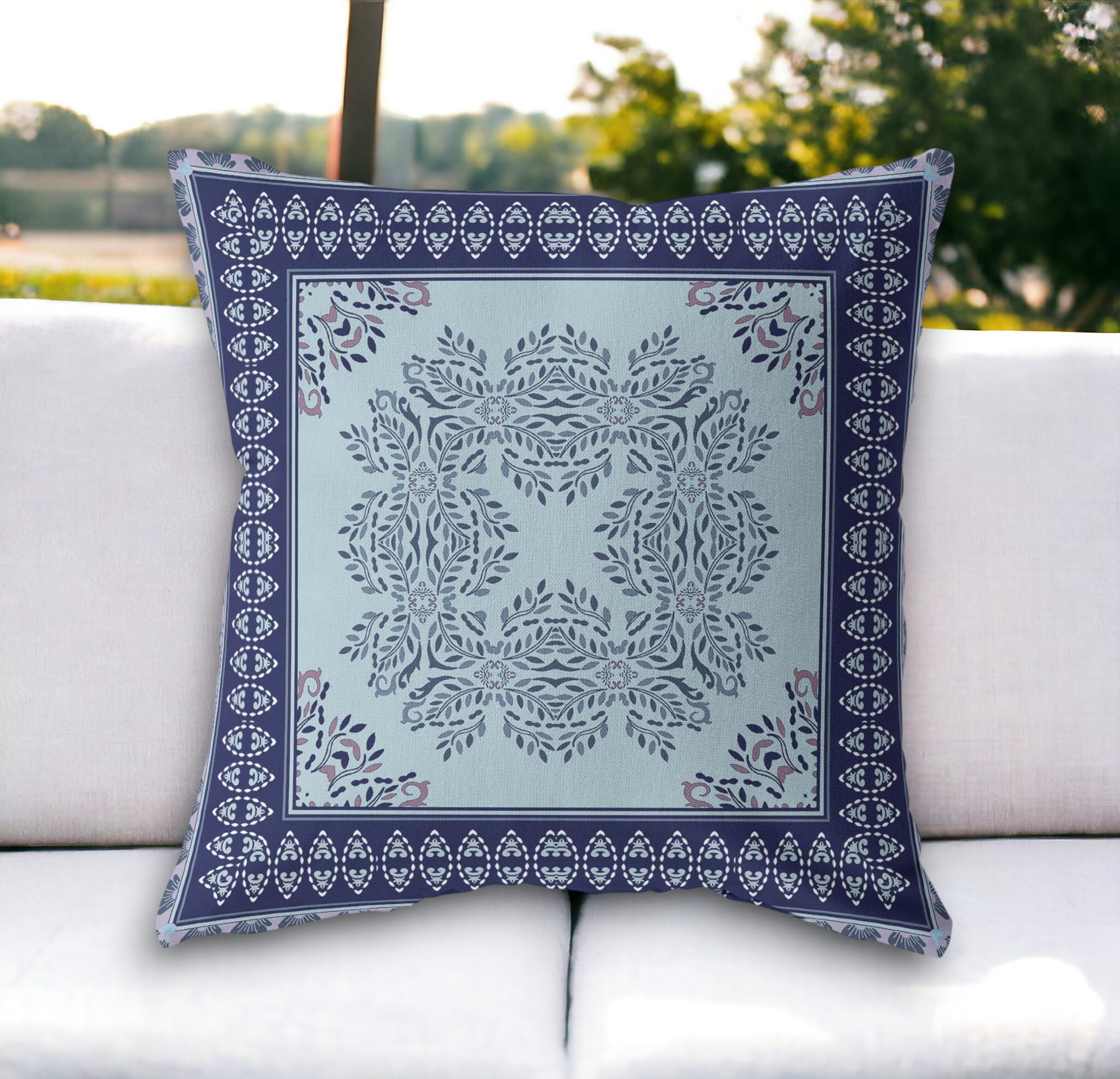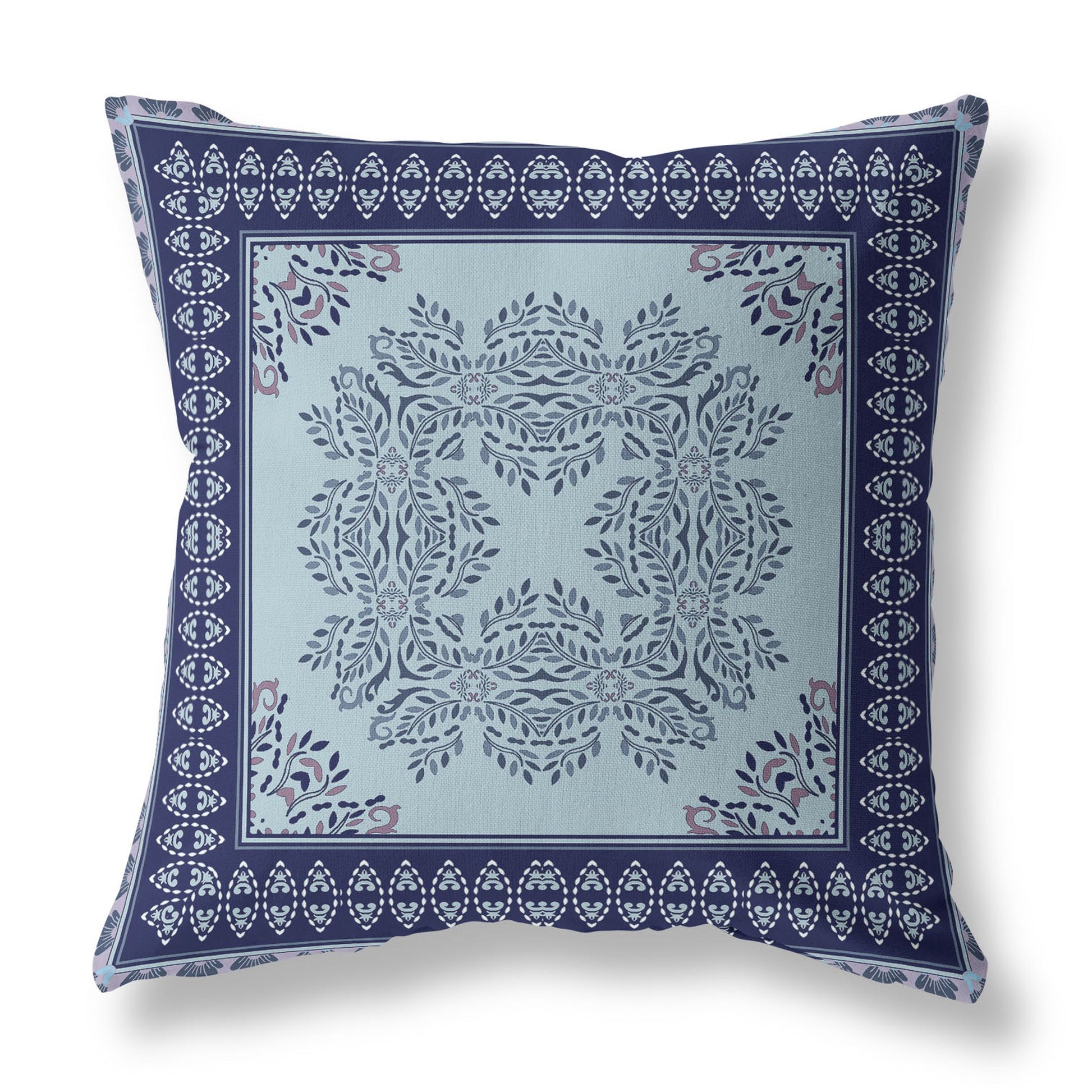5" Indigo Damask Indoor Outdoor Throw Pillow Cover and Insert