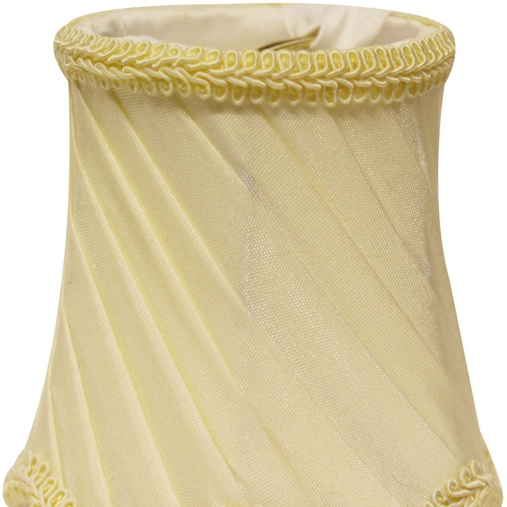 This Slate Grey Set of 6 Slanted Swirl Chandelier Silk Lampshades has a hint of farmhouse flair and will be a great addition to your lamp base. This hardback lampshade includes a standard flame clip that fits over a standard harp and can be used with your existing finial design. This high quality crafted drum shape has a slight slant to give it some visual interest and is crafted of the finest silk with a fold on top and bottom of the shade. 5" x 5" x 5"