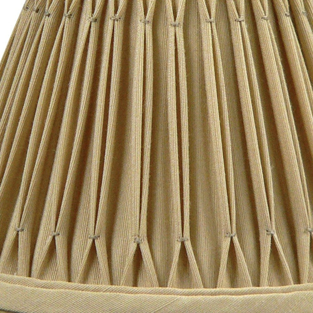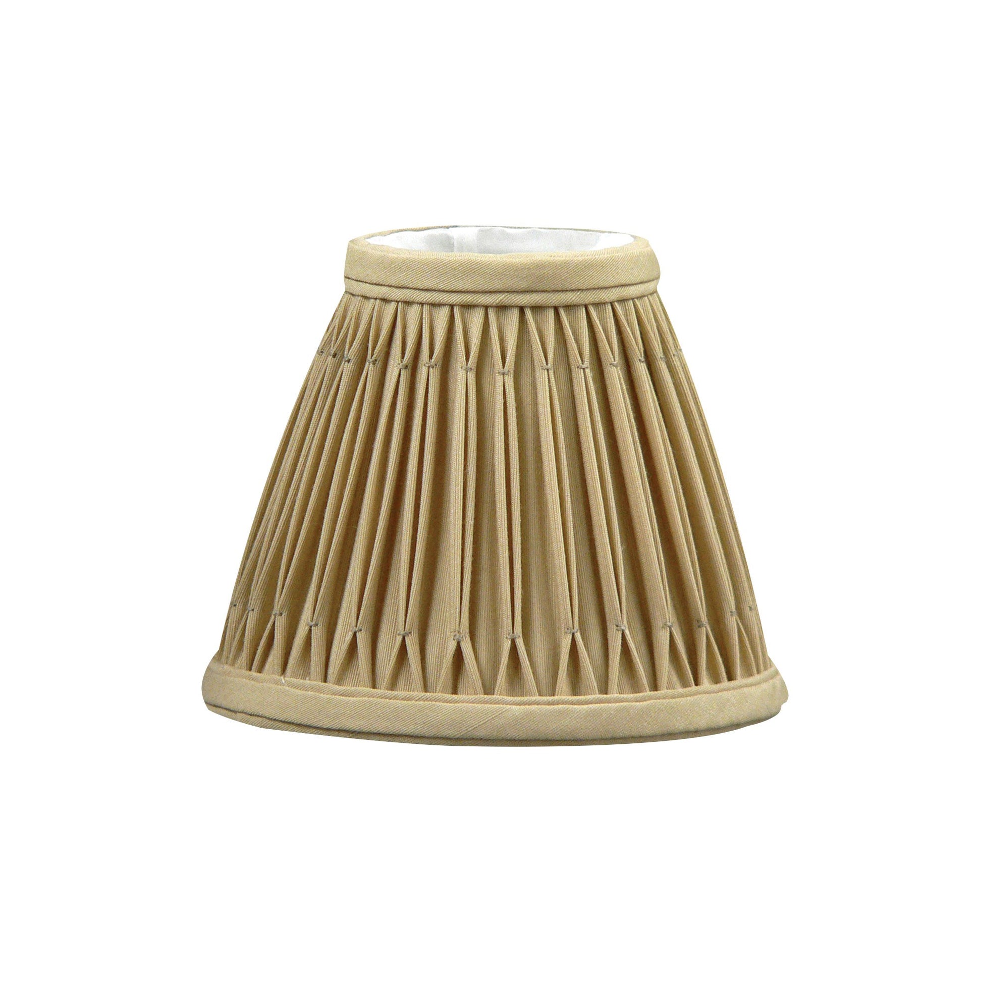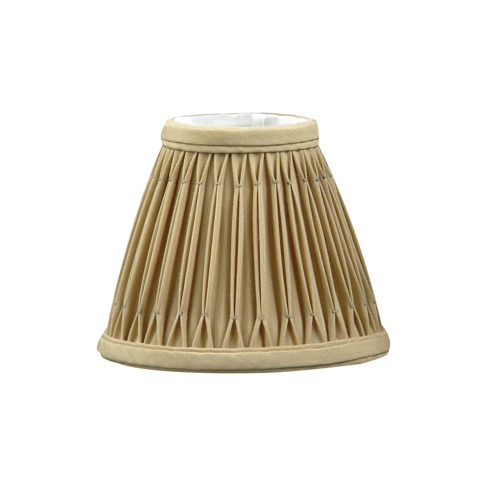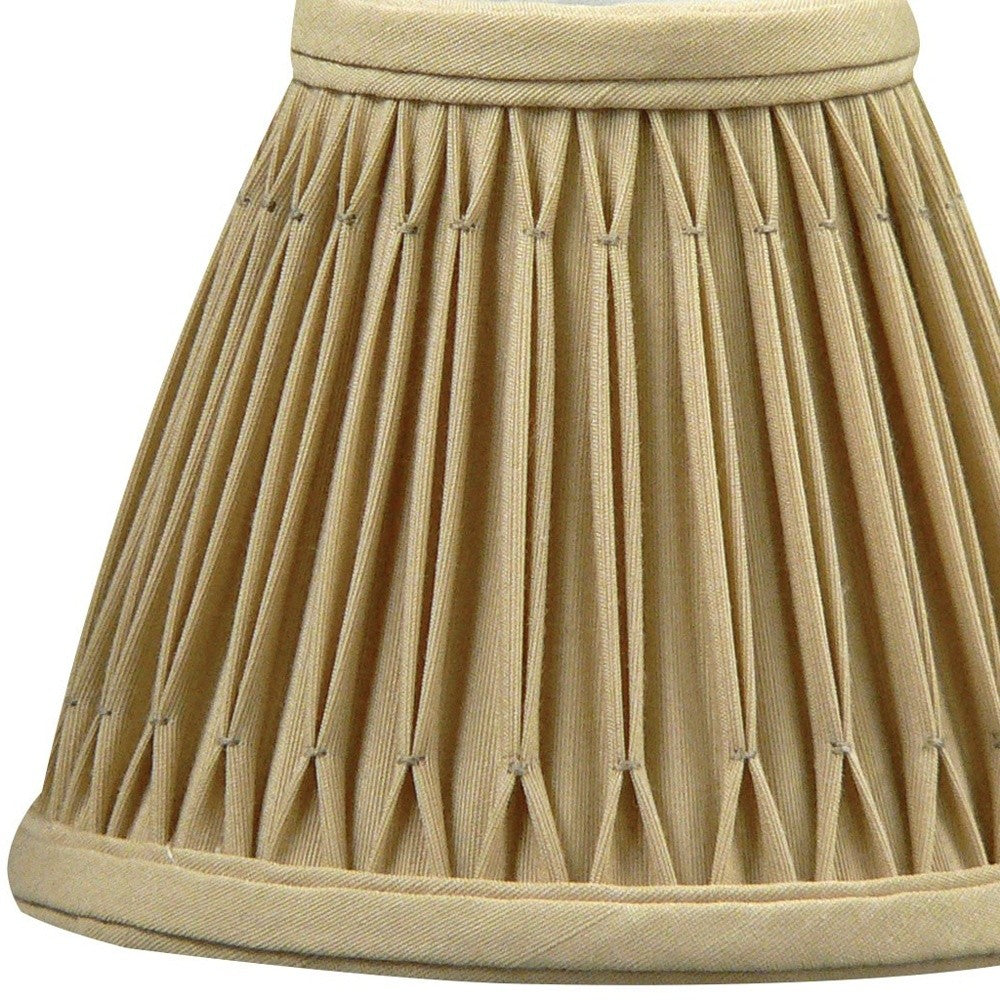 These 5" Vintage Gold Set of 6 Empire Slanted Chandelier Shantung Lampshades have a hint of traditional flair and will be a great addition to your lamp base. This slanted empire chandelier lampshade includes a flame clip that fits over a standard harp and can be used with your existing finial design. This high quality crafted oval shape has a slight slant to give it some visual interest and is crafted of the finest shantung with a fold on top and bottom of the shade. 4" x 5" x 5"
