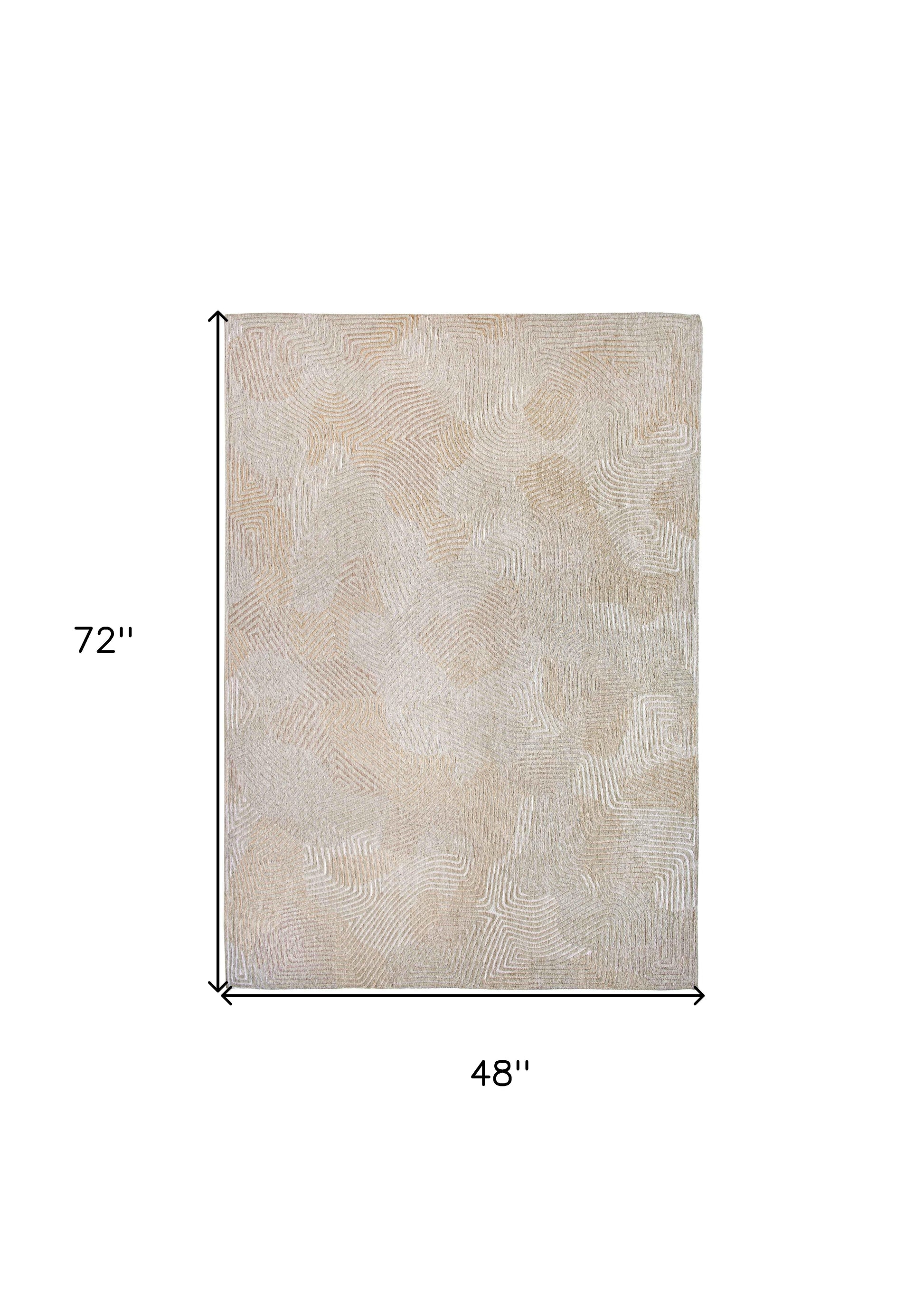 5' x 7' Beige and White Abstract Non Skid Area Rug