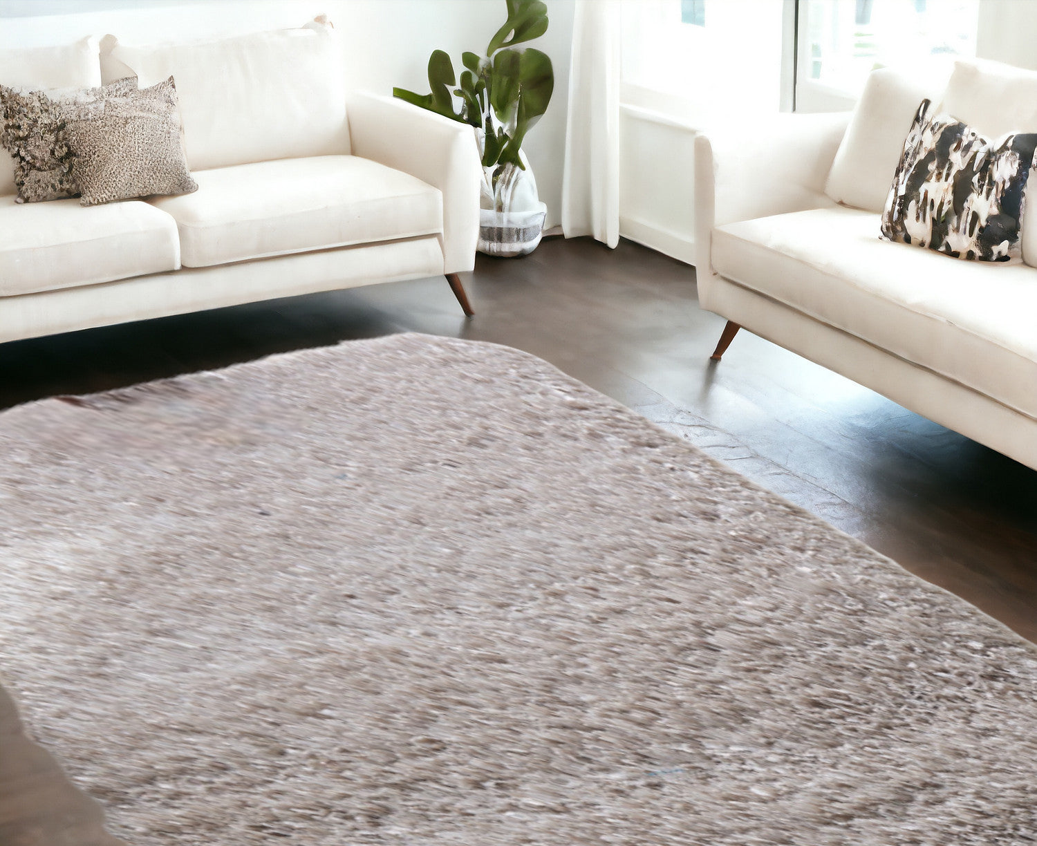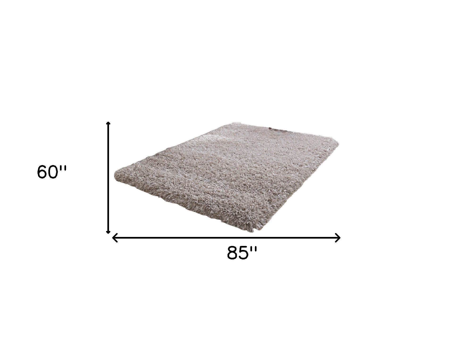 5' x 7' Beige Shag Hand Tufted Area Rug