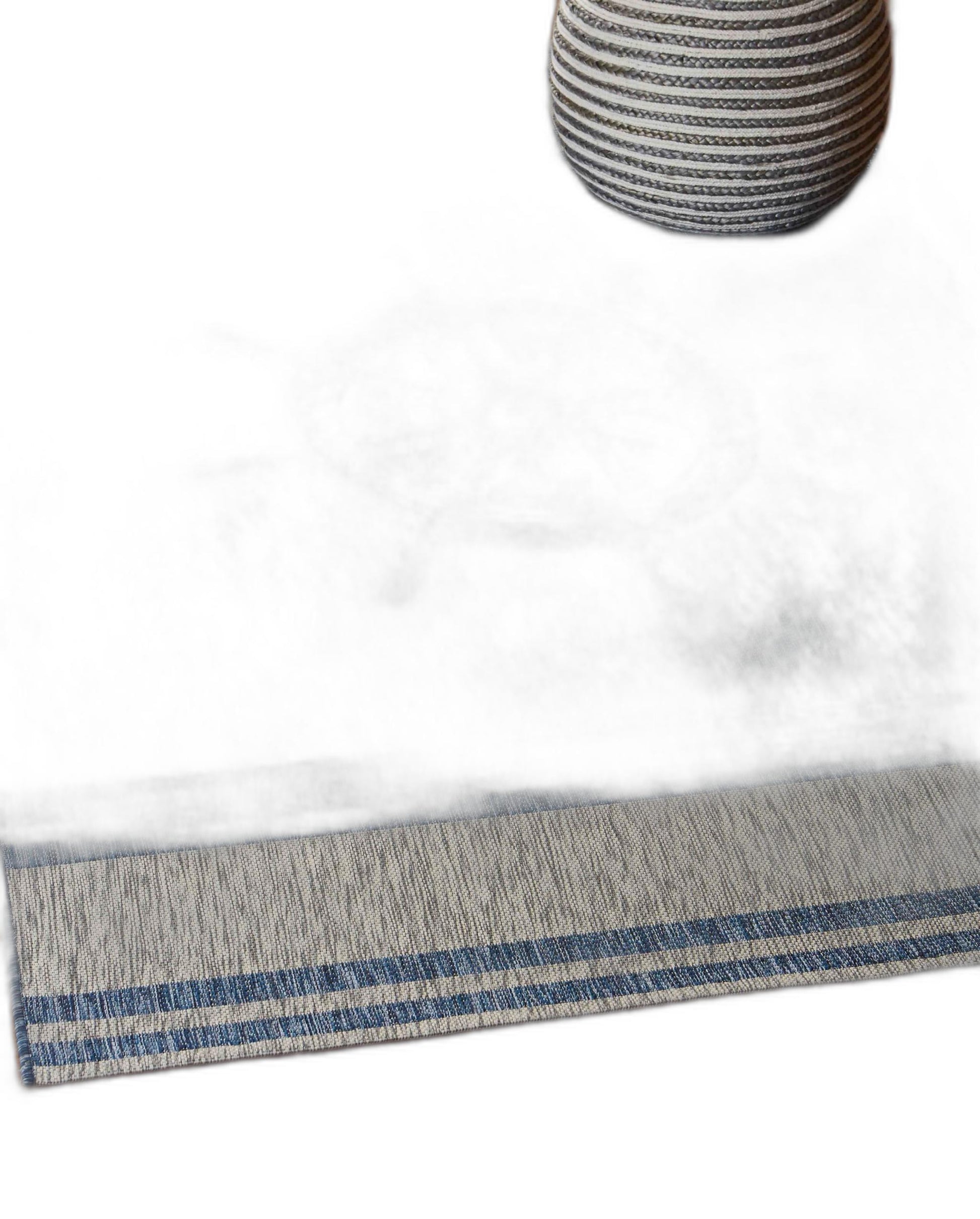 Set an inviting tone in your space with this 5' x 7' blue and gray indoor outdoor area rug. This superior Turkish rug represents the highest quality and is built to last. Place this area rug against a hardwood or tile floor and it will enliven your living space with style and sophistication. 0.35" H x 60" W x 84" D