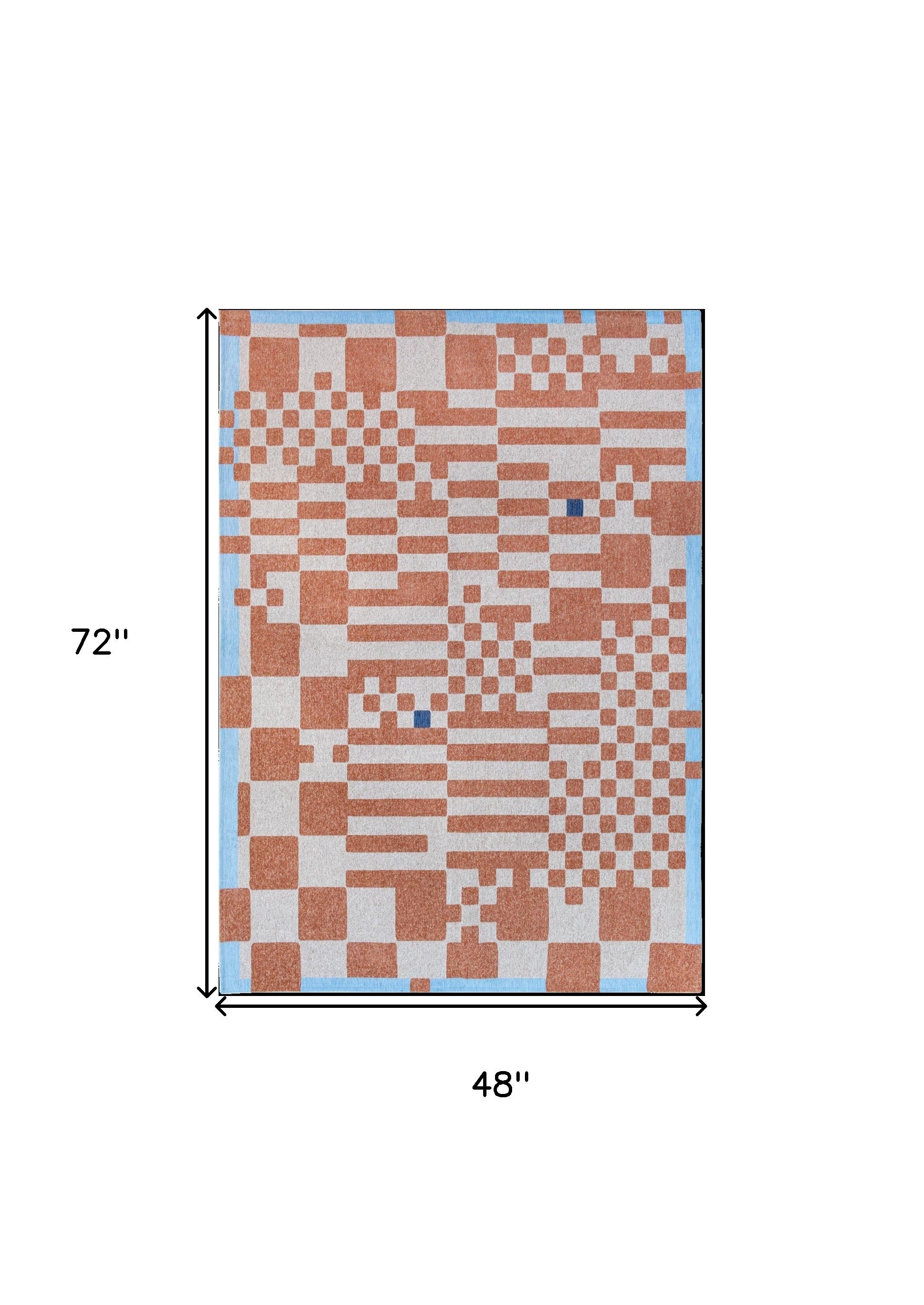 5' x 7' Blue and Red Geometric Non Skid Area Rug