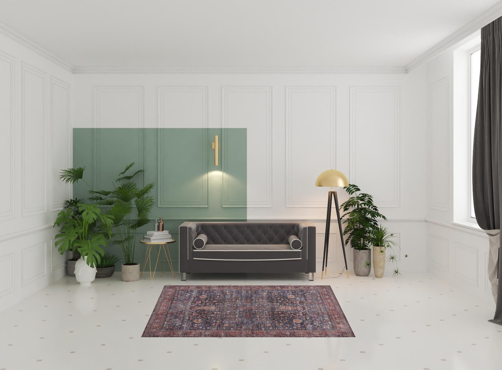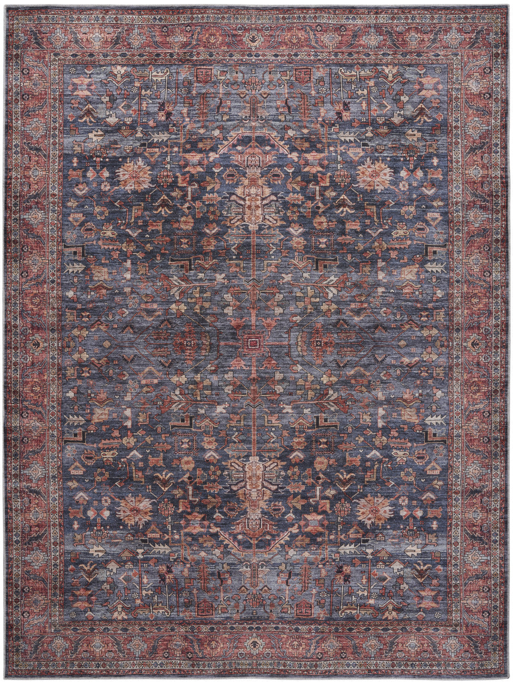 This 5-foot x 7-foot blue and red oriental power loom distressed washable non skid area rug, is a great way to add warmth to a room. This rectangle shaped rug features a oriental design in blue and red to give it visual interest. A classic shape marries with good looking design for your space Place this area rug against a hardwood or tile floor and it will enliven your living space with style and sophistication. .25-inch H x 63.00-inch W x 87.00-inch D