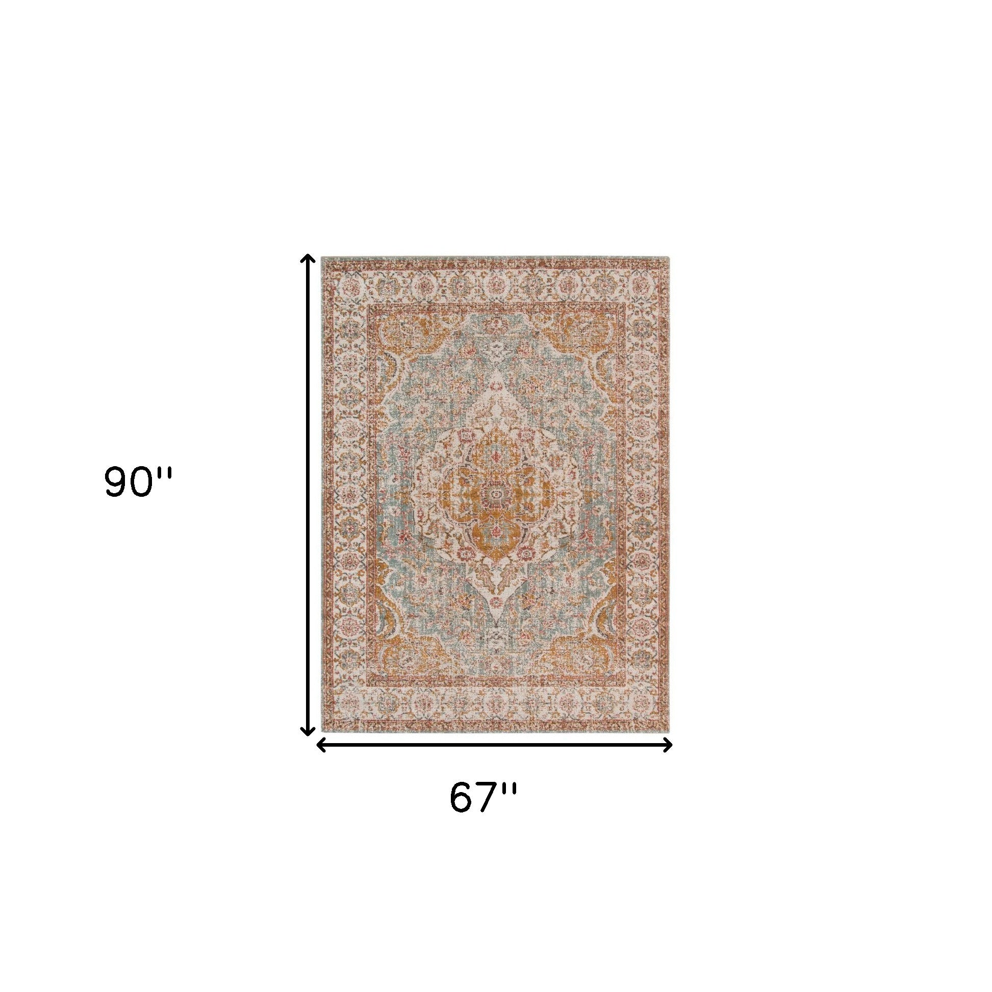 5' x 7' Blue Oriental Power Loom Area Rug With Fringe