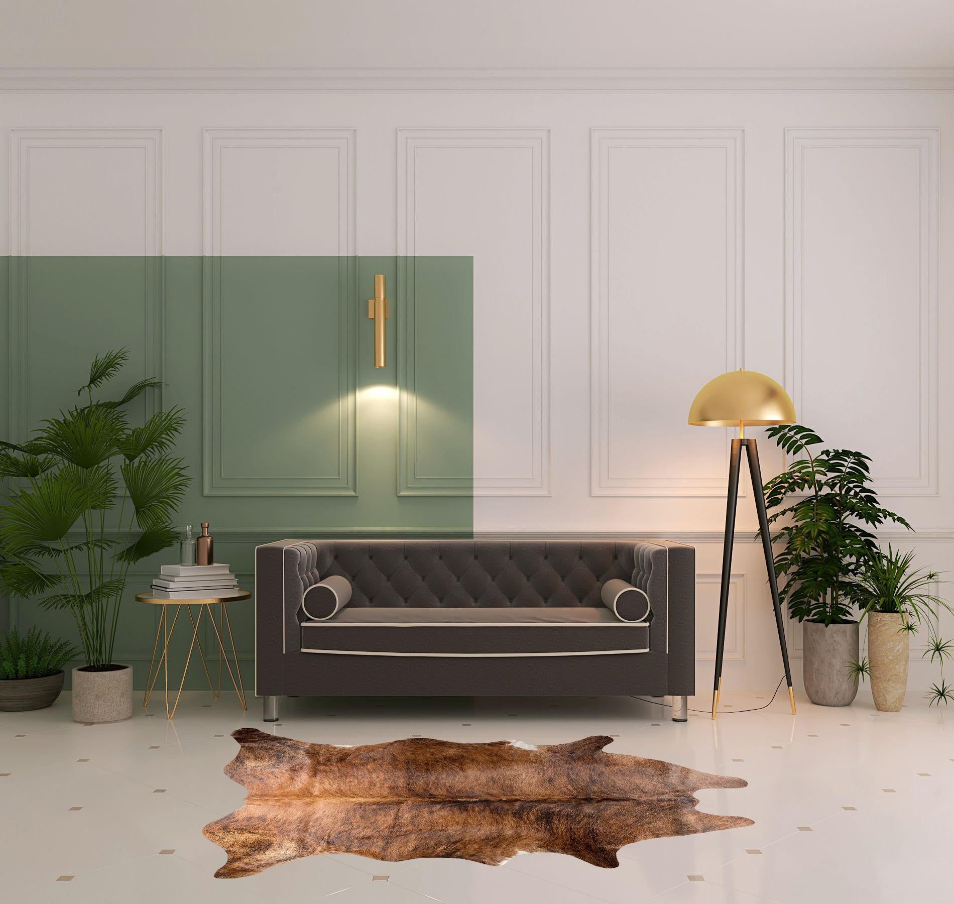 Set an inviting tone in your space with this 5-foot x 7-foot brown cowhide hand knotted area rug. Ideal for spaces with kids and pets, this rug is stain resistant to help repel stains and spilled liquids. Crafted by skilled artisans, this hand knotted rug is genuine and unique. No two will be exactly alike. Area rugs help to give warmth and sense of home to your space. 60-inch H x 84-inch W x 0.1-inch D