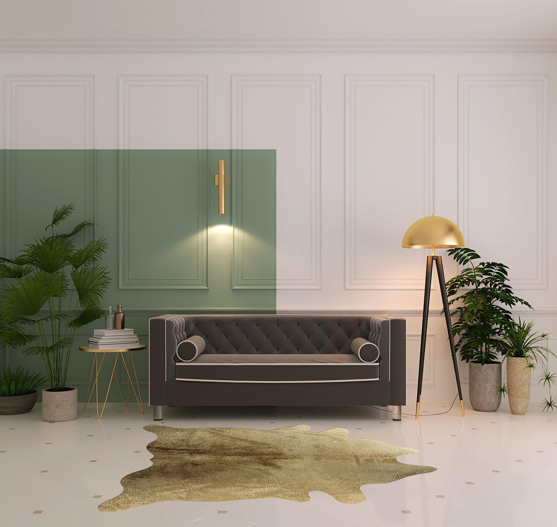 Add some artistry to your room with this 5-foot x 7-foot gold cowhide hand knotted area rug. Ideal for spaces with kids and pets, this rug is stain resistant to help repel stains and spilled liquids. Crafted by skilled artisans, this hand knotted rug is genuine and unique. No two will be exactly alike. Place this area rug against a hardwood or tile floor and it will enliven your living space with style and sophistication. 60-inch H x 84-inch W x 0.1-inch D