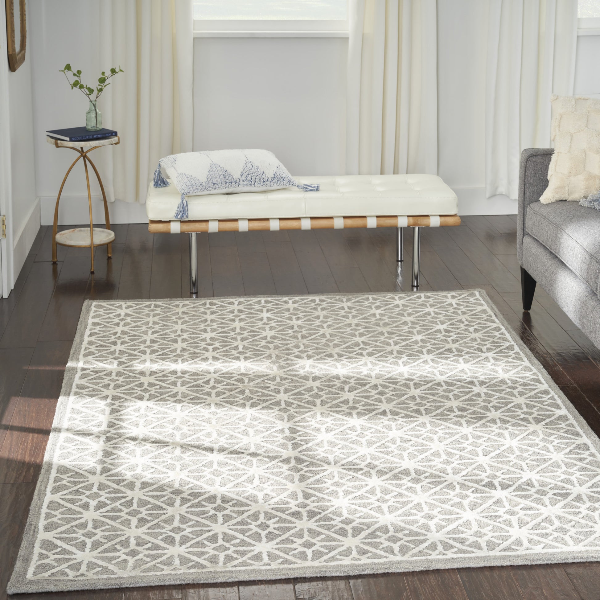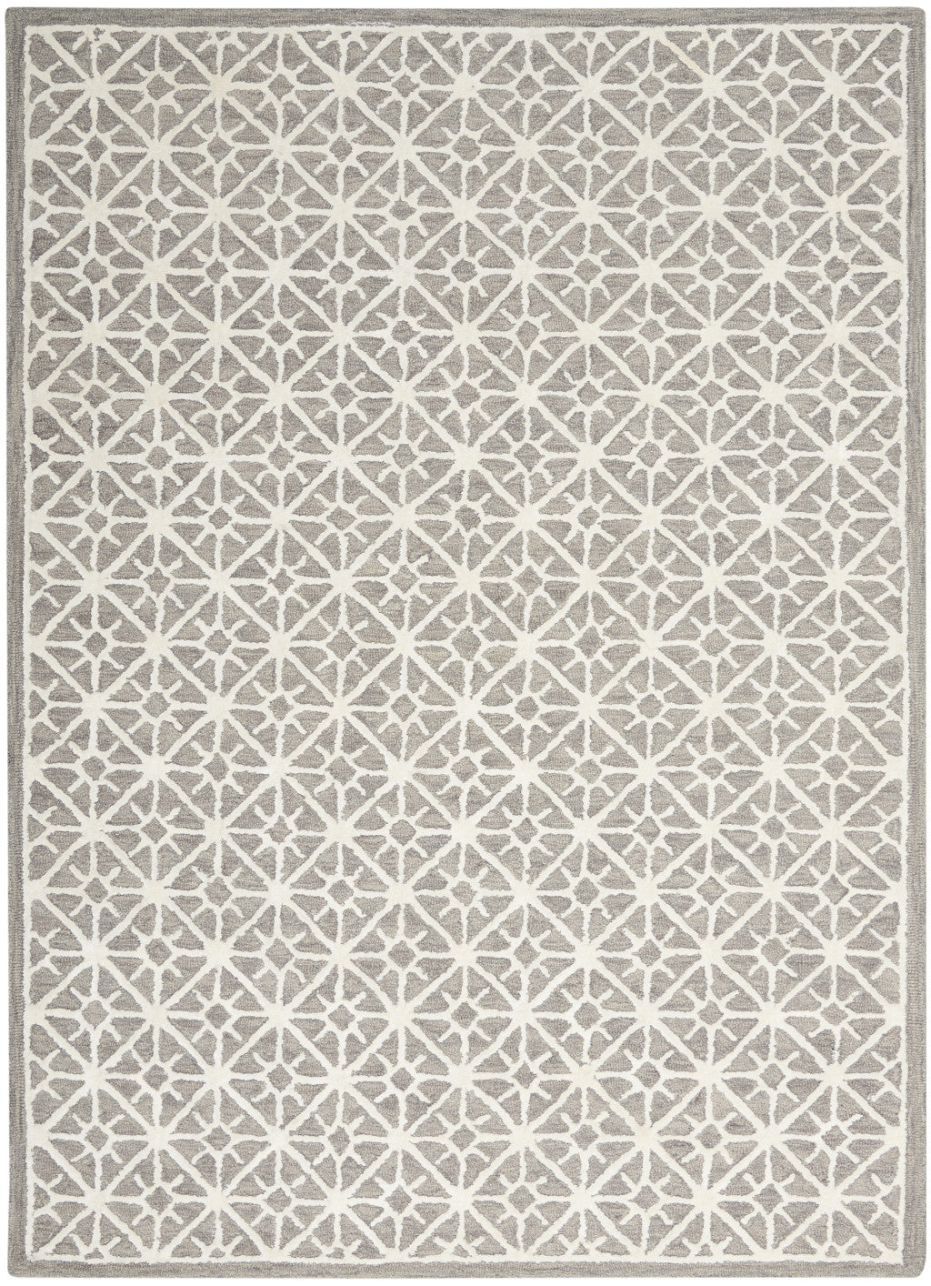 Set an inviting tone in your space with this 5-foot x 7-foot gray and ivory geometric hand tufted area rug. This rectangle shaped rug features a geometric design in gray and ivory to give it visual interest. A classic shape marries with good looking design for your space Place this area rug against a hardwood or tile floor and it will enliven your living space with style and sophistication. .50-inch H x 63.00-inch W x 87.00-inch D